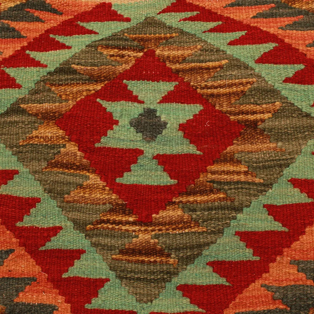 Oglejte si to ročno tkano okrasno blazino Kilim, ki je popolna mešanica tradicionalnega afganistanskega tkanja preprog in elegantnega domačega dekorja. Ta edinstvena prevleka za blazino Kilim bo s svojim elegantnim videzom, bogatimi barvami in osupljivimi vzorci oživila vsako notranjost. Ročno tkana prevleka za blazino je izdelana iz originalne afganistanske preproge Kilim, ki se odlično ujema z različnimi slogi pohištva in notranje opreme. Živahne barve in edinstveni vzorci ustvarijo vznemirljiv vizualni učinek in izboljšajo ambient v vašem prostoru, ne glede na to, ali gre za dnevno sobo ali spalnico. Iz afganistanske volne izdelana prevleka za blazino Kilim je enostavna za čiščenje, zato je vzdrževanje preprosto. Poleg tega trpežnost materiala zagotavlja, da boste v lepoti okrasne blazine Kilim na svojem pohištvu lahko uživali še vrsto let. Barve in vzorci blazine Kilim bodo zaradi temeljitega pranja po postopku tkanja dolgo časa ostali živahni. Ta skrbna obdelava zagotavlja dolgo življenjsko dobo in izvirno lepoto prevleke za blazino. Pisane okrasne blazine Kilim ponujajo široko paleto možnosti za zamisli o notranjem oblikovanju. Ne glede na to, ali želite v sobi ustvariti edinstveno vzdušje ali izboljšati obstoječe pohištvo, je barvita blazina Kilim odlična izbira.