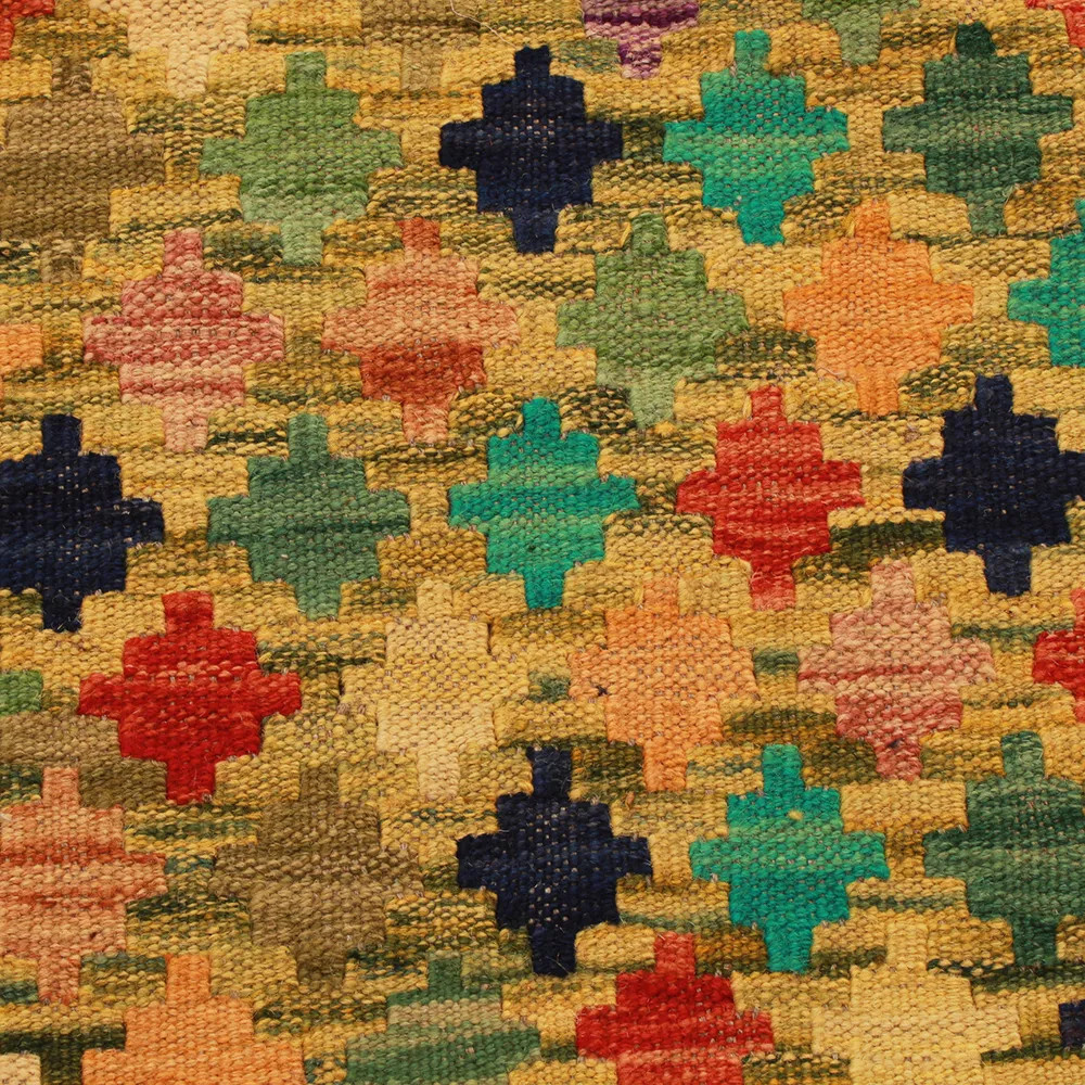 Oglejte si to ročno tkano okrasno blazino Kilim, ki je popolna mešanica tradicionalnega afganistanskega tkanja preprog in elegantnega domačega dekorja. Ta edinstvena prevleka za blazino Kilim bo s svojim elegantnim videzom, bogatimi barvami in osupljivimi vzorci oživila vsako notranjost. Ročno tkana prevleka za blazino je izdelana iz originalne afganistanske preproge Kilim, ki se odlično ujema z različnimi slogi pohištva in notranje opreme. Živahne barve in edinstveni vzorci ustvarijo vznemirljiv vizualni učinek in izboljšajo ambient v vašem prostoru, ne glede na to, ali gre za dnevno sobo ali spalnico. Iz afganistanske volne izdelana prevleka za blazino Kilim je enostavna za čiščenje, zato je vzdrževanje preprosto. Poleg tega trpežnost materiala zagotavlja, da boste v lepoti okrasne blazine Kilim na svojem pohištvu lahko uživali še vrsto let. Barve in vzorci blazine Kilim bodo zaradi temeljitega pranja po postopku tkanja dolgo časa ostali živahni. Ta skrbna obdelava zagotavlja dolgo življenjsko dobo in izvirno lepoto prevleke za blazino. Pisane okrasne blazine Kilim ponujajo široko paleto možnosti za zamisli o notranjem oblikovanju. Ne glede na to, ali želite v sobi ustvariti edinstveno vzdušje ali izboljšati obstoječe pohištvo, je barvita blazina Kilim odlična izbira.