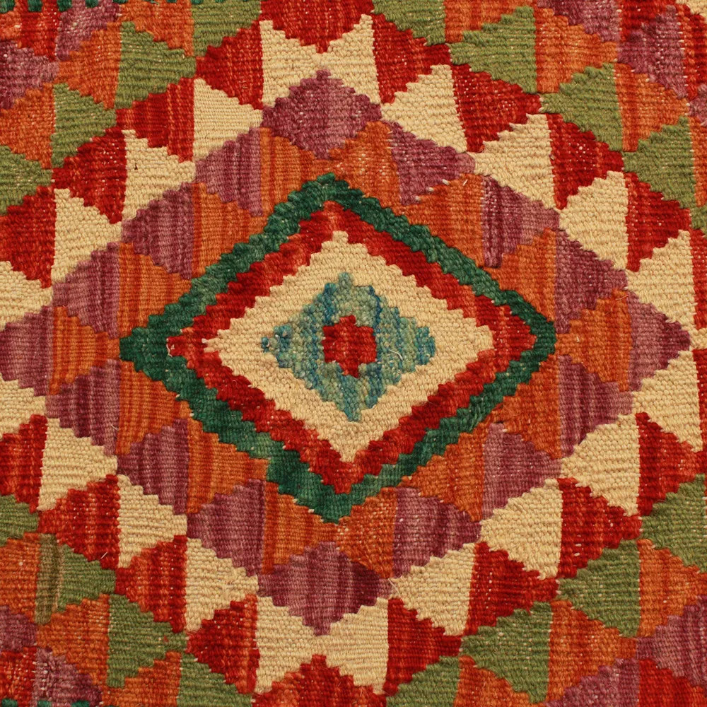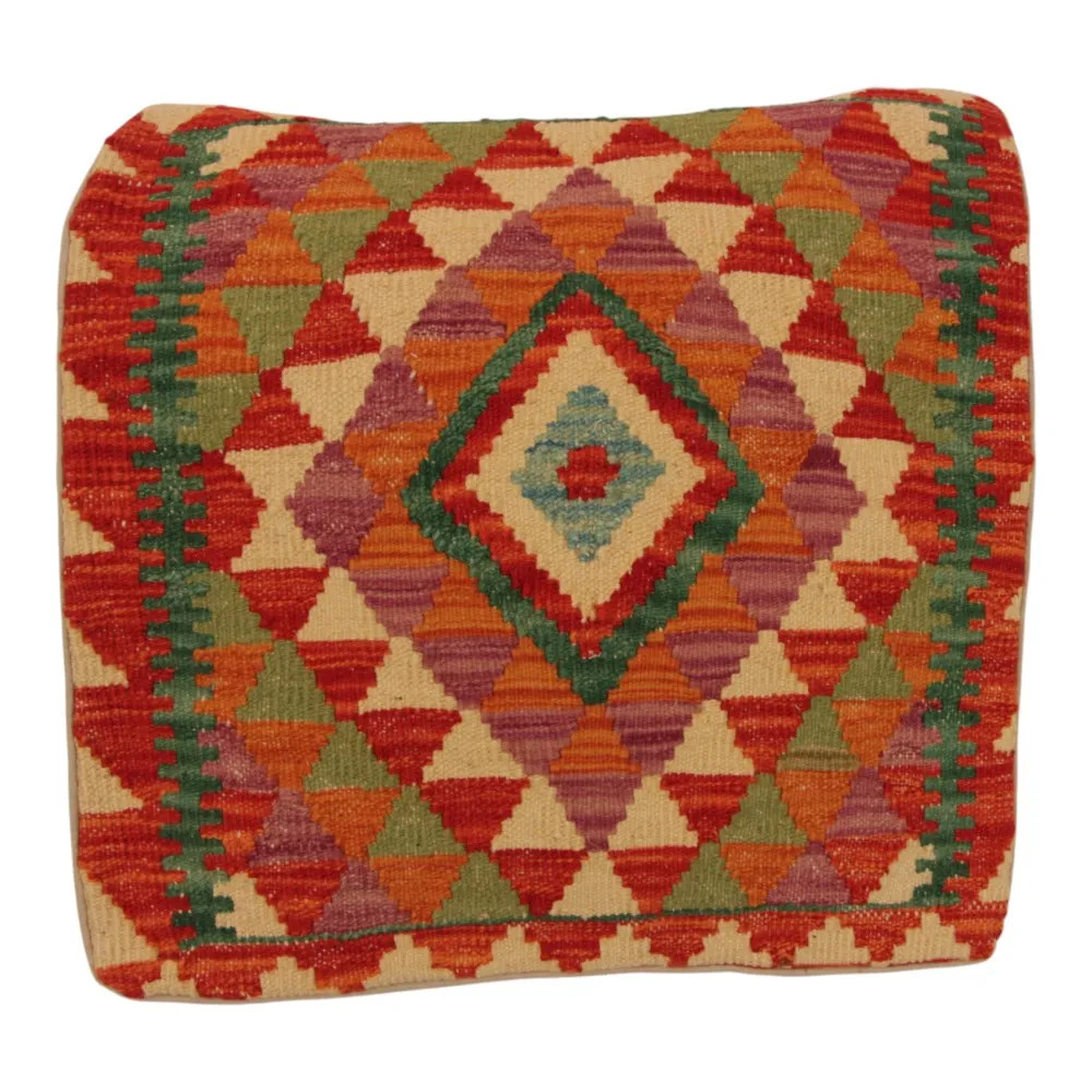 Oglejte si to ročno tkano okrasno blazino Kilim, ki je popolna mešanica tradicionalnega afganistanskega tkanja preprog in elegantnega domačega dekorja. Ta edinstvena prevleka za blazino Kilim bo s svojim elegantnim videzom, bogatimi barvami in osupljivimi vzorci oživila vsako notranjost. Ročno tkana prevleka za blazino je izdelana iz originalne afganistanske preproge Kilim, ki se odlično ujema z različnimi slogi pohištva in notranje opreme. Živahne barve in edinstveni vzorci ustvarijo vznemirljiv vizualni učinek in izboljšajo ambient v vašem prostoru, ne glede na to, ali gre za dnevno sobo ali spalnico. Iz afganistanske volne izdelana prevleka za blazino Kilim je enostavna za čiščenje, zato je vzdrževanje preprosto. Poleg tega trpežnost materiala zagotavlja, da boste v lepoti okrasne blazine Kilim na svojem pohištvu lahko uživali še vrsto let. Barve in vzorci blazine Kilim bodo zaradi temeljitega pranja po postopku tkanja dolgo časa ostali živahni. Ta skrbna obdelava zagotavlja dolgo življenjsko dobo in izvirno lepoto prevleke za blazino. Pisane okrasne blazine Kilim ponujajo široko paleto možnosti za zamisli o notranjem oblikovanju. Ne glede na to, ali želite v sobi ustvariti edinstveno vzdušje ali izboljšati obstoječe pohištvo, je barvita blazina Kilim odlična izbira.