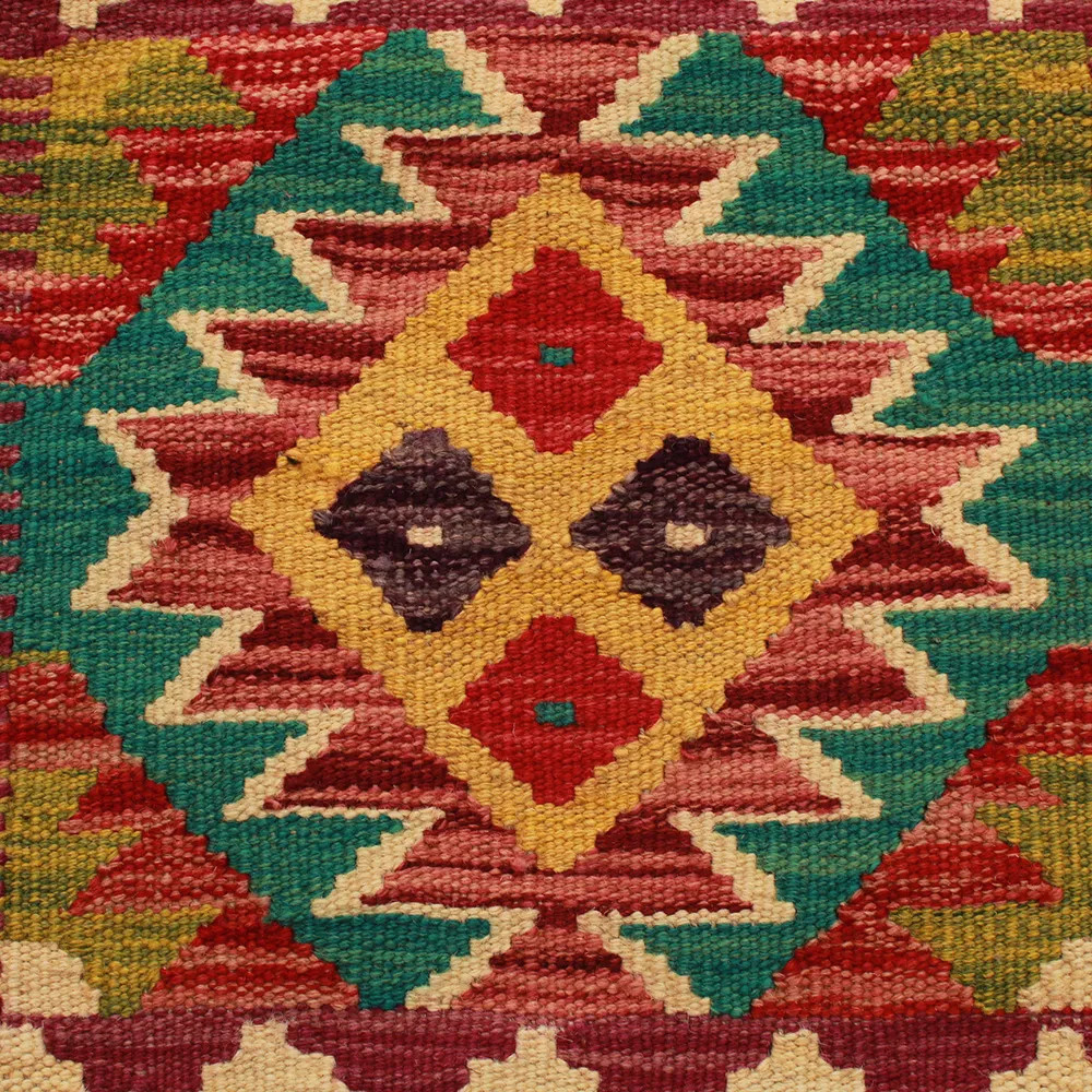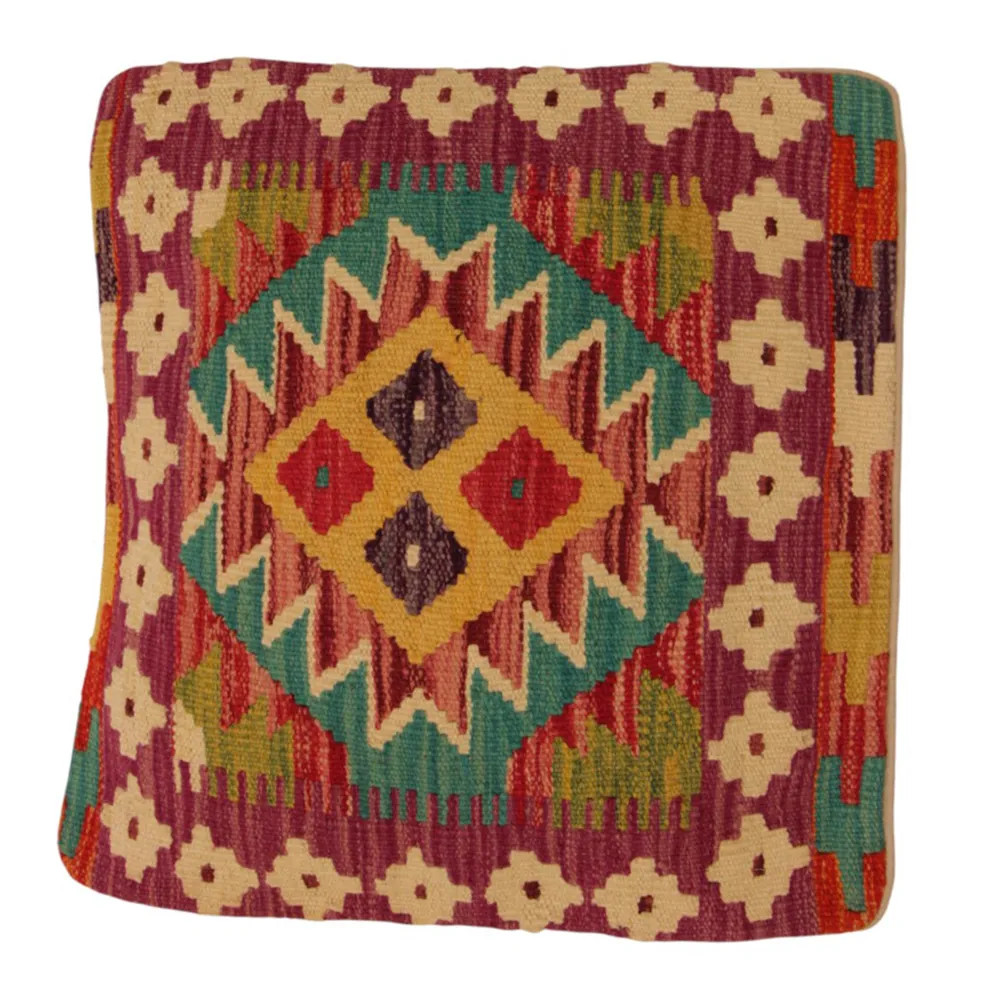 Oglejte si to ročno tkano okrasno blazino Kilim, ki je popolna mešanica tradicionalnega afganistanskega tkanja preprog in elegantnega domačega dekorja. Ta edinstvena prevleka za blazino Kilim bo s svojim elegantnim videzom, bogatimi barvami in osupljivimi vzorci oživila vsako notranjost. Ročno tkana prevleka za blazino je izdelana iz originalne afganistanske preproge Kilim, ki se odlično ujema z različnimi slogi pohištva in notranje opreme. Živahne barve in edinstveni vzorci ustvarijo vznemirljiv vizualni učinek in izboljšajo ambient v vašem prostoru, ne glede na to, ali gre za dnevno sobo ali spalnico. Iz afganistanske volne izdelana prevleka za blazino Kilim je enostavna za čiščenje, zato je vzdrževanje preprosto. Poleg tega trpežnost materiala zagotavlja, da boste v lepoti okrasne blazine Kilim na svojem pohištvu lahko uživali še vrsto let. Barve in vzorci blazine Kilim bodo zaradi temeljitega pranja po postopku tkanja dolgo časa ostali živahni. Ta skrbna obdelava zagotavlja dolgo življenjsko dobo in izvirno lepoto prevleke za blazino. Pisane okrasne blazine Kilim ponujajo široko paleto možnosti za zamisli o notranjem oblikovanju. Ne glede na to, ali želite v sobi ustvariti edinstveno vzdušje ali izboljšati obstoječe pohištvo, je barvita blazina Kilim odlična izbira.