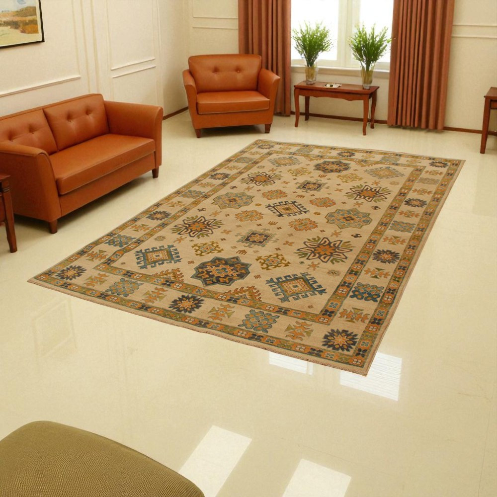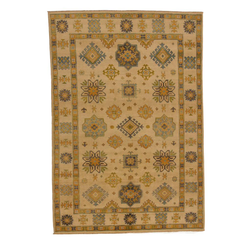 Preproga Kazak je postala priljubljena predvsem zaradi svojih toplih in svetlih barv. Notranji oblikovalci jo najpogosteje priporočajo za klasično opremljene domove. Njeni vzorci so navdihnjeni z ruskimi geometrijskimi vzorci. Imenuje se samo kazahstanska preproga, vendar je afganistanska preproga. Uporabljena volna je obarvana z naravnimi rastlinskimi barvili. Za orientalsko preprogo Kazak je značilna izrazita barvna shema. Njena prednost je, da zaradi svetlih barv ne zatemni vzdušja v sobi. Kot preproga za dnevno sobo se odlično ujema z barvami zofe ali kavne mizice. Kot preproga za spalnico se uporablja tudi na obeh straneh postelje. V tem primeru je dovolj, če se barve preprog ujemajo. Vsak korak pri izdelavi preproge je 100% ročno vozlanje. Zaradi svoje trpežnosti jo lahko položite v najbolj obremenjene dnevne sobe. Tehnika vozlanja orientalskih preprog Kazak se imenuje Gheordes, kar pomeni dvojno vozlanje. Ko je preproga končana, se štirikrat opere in nato posuši na soncu. Ne vsebuje nobenih alergenih snovi.