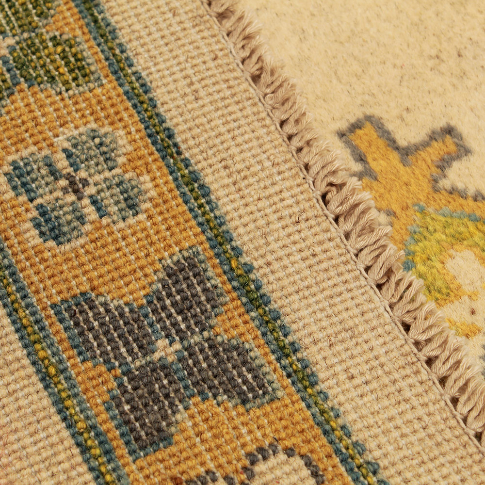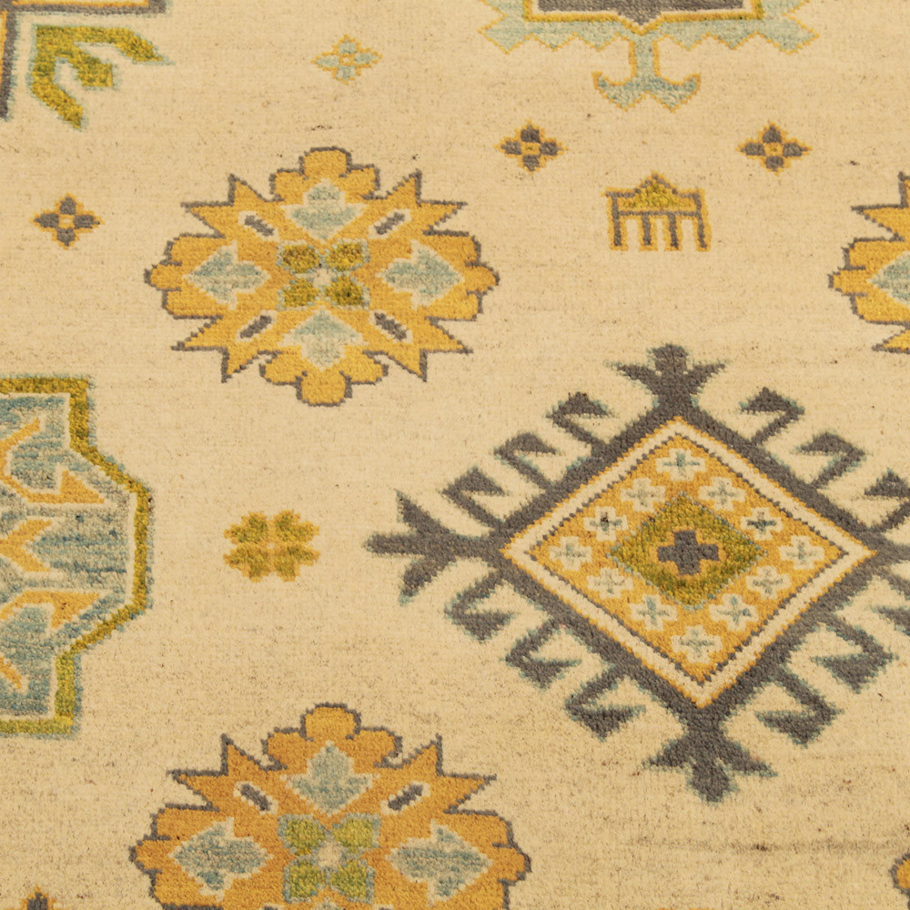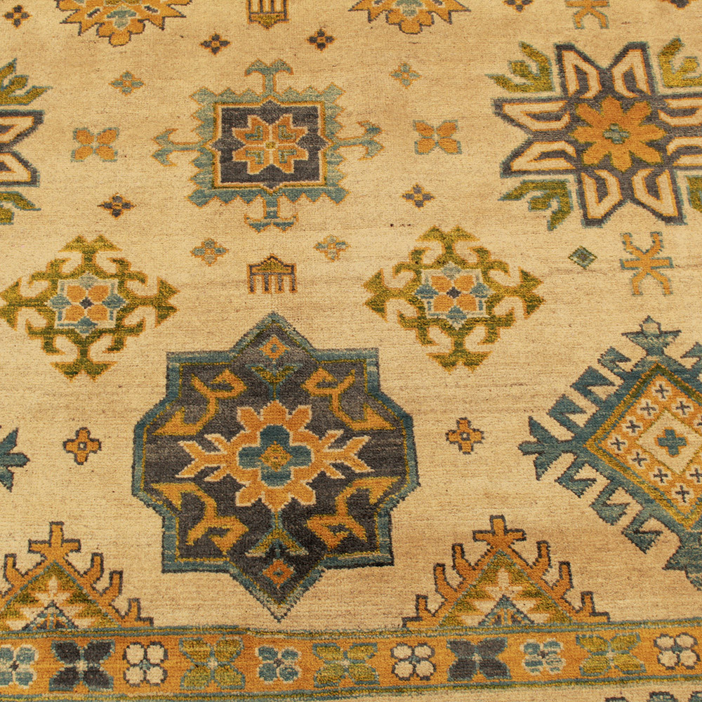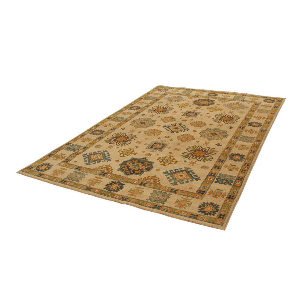 Iščete barvito orientalsko preprogo? Potem si oglejte to preprogo Kazak, ki vas bo očarala s čudovitimi igrivimi barvami. Ta preproga Kazak je trpežna, enostavna za čiščenje in sesanje. Najprimernejša je za prostore s klasično notranjostjo. Ker gre za večbarvno orientalsko preprogo, jo je enostavno uskladiti z barvami pohištva ali drugega tekstila. Ta preproga Kazak je štirikrat oprana in posušena na soncu. Ne vsebuje alergenih snovi. Uporablja se lahko tudi v prostorih s talnim ogrevanjem, vendar je v tem primeru priporočljivo sesati pod preprogo, da se izognete moljem. Barve preproge Kazak so pridobljene iz rastlin v naravi. Preproge Kazak se večinoma izdelujejo v Afganistanu ali v delih Pakistana, kjer živijo Afganistanci. Ker gre za trpežno preprogo, jo je mogoče namestiti tudi v najbolj obremenjene dnevne sobe. Vaši dnevni sobi doda eleganco in prestiž. Preproga Kazak je izdelana iz 100% afganistanske volne. Zanjo so značilni predvsem geometrijski vzorci. To je resnično visokokakovostna ročno vozlana preproga.