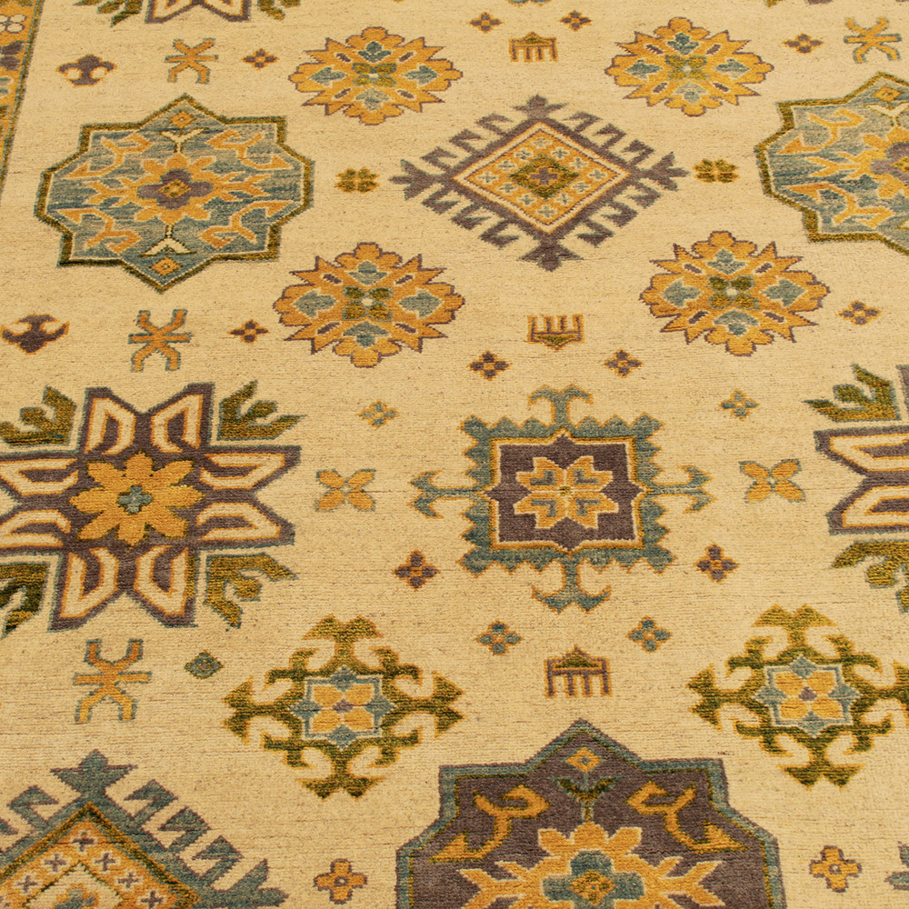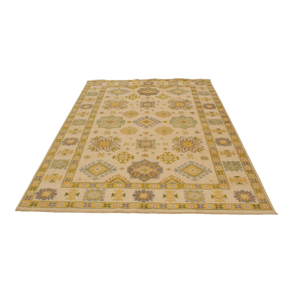 Iščete barvito orientalsko preprogo? Potem si oglejte to preprogo Kazak, ki vas bo očarala s čudovitimi igrivimi barvami. Ta preproga Kazak je trpežna, enostavna za čiščenje in sesanje. Najprimernejša je za prostore s klasično notranjostjo. Ker gre za večbarvno orientalsko preprogo, jo je enostavno uskladiti z barvami pohištva ali drugega tekstila. Ta preproga Kazak je štirikrat oprana in posušena na soncu. Ne vsebuje alergenih snovi. Uporablja se lahko tudi v prostorih s talnim ogrevanjem, vendar je v tem primeru priporočljivo sesati pod preprogo, da se izognete moljem. Barve preproge Kazak so pridobljene iz rastlin v naravi. Preproge Kazak se večinoma izdelujejo v Afganistanu ali v delih Pakistana, kjer živijo Afganistanci. Ker gre za trpežno preprogo, jo je mogoče namestiti tudi v najbolj obremenjene dnevne sobe. Vaši dnevni sobi doda eleganco in prestiž. Preproga Kazak je izdelana iz 100% afganistanske volne. Zanjo so značilni predvsem geometrijski vzorci. To je resnično visokokakovostna ročno vozlana preproga.