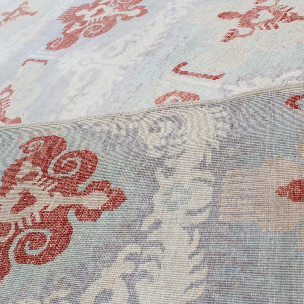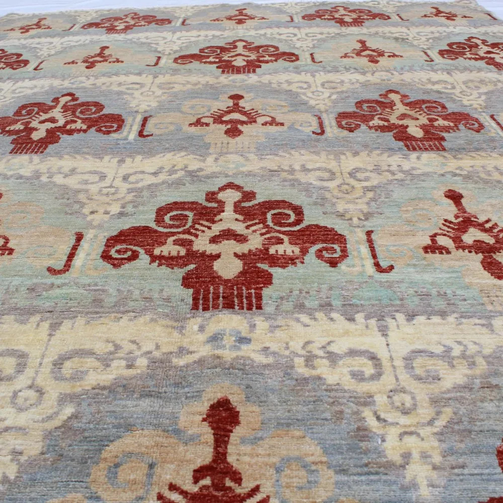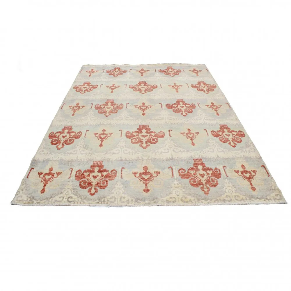 Preproga Aikat je sodobno oblikovana preproga, ki predstavlja popolno mešanico sodobnega časa in tradicionalnega orientalskega sloga preprog. Čeprav je oblikovno razmeroma mlada, ima številne prednosti, zaradi katerih je idealna za minimalistične in klasične interierje. Ročno vozlana preproga Aikat je izdelana v Afganistanu in bo s svojimi sodobnimi vzorci in barvami vašemu domu dodala edinstven ambient. Izdelana preproga je temeljito oprana in posušena na vročem soncu, kar prispeva k njeni neverjetno obstojni barvi. Ta moderna orientalska preproga je prava mojstrovina, ki je 100% ročno izdelana. Barve preprog Aikat izhajajo iz naravno pridobljenih barvil. Tkanina preproge Aikat je iz volne, votek pa iz bombaža. Ročno vozlana preproga Aikat je izdelana s tehniko vozlanja Gheordes, kar pomeni dvojno vozlanje. Oblikovanje in izdelava preproge Aikat je dolg in naporen postopek, ki zahteva bogate izkušnje in znanje mojstrov, ki vozlijo preproge. Orientalska preproga Aikat ustvarja prijetno vzdušje v vsakem prostoru, naj bo to dnevna soba ali spalnica. In če iščete preprogo za hodnik, boste pravo našli v ponudbi trgovine s preprogami CarpetDepo. Ročno vozlana preproga Aikat ni le privlačna za oči, temveč tudi praktična in elegantna izbira za okrasitev vašega doma. Ta preproga je tudi idealna izbira za ustvarjanje toplega občutka. Zaradi svojih naravnih lastnosti je volna odličen izolator pred mrazom, kar ustvarja prijetno vzdušje tudi v minimalističnih prostorih, kjer imajo pomembno vlogo lepe ploščice. Ta volnena preproga ni idealna le za dom, temveč tudi za različne družbene prostore. Tako na primer dodajo eleganten in slogoven videz tudi luksuznim pisarnam in hotelom. Če želite v svoji dnevni sobi ali spalnici ustvariti res posebno in ekskluzivno vzdušje, je ročno vozlana preproga Aikat odlična izbira. Pred nakupom preproge se prepričajte, da je njena velikost primerna velikosti vaše sobe. Vzorec in barva moderne orientalske preproge bosta na kraju samem postala resnično očitna, ali se ujema z izbranim prostorom. Če pa z izbrano preprogo niste zadovoljni, vam ni treba skrbeti, saj vam trgovina s preprogami CarpetDepo ponuja brezplačno politiko vračanja.