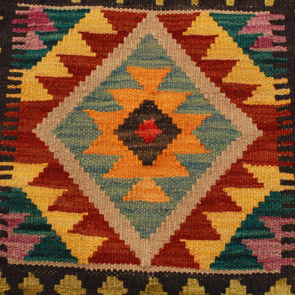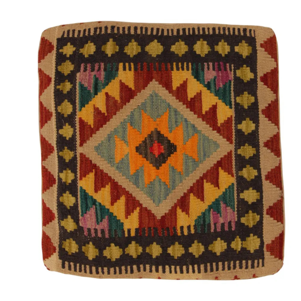Oglejte si to ročno tkano okrasno blazino Kilim, ki je popolna mešanica tradicionalnega afganistanskega tkanja preprog in elegantnega domačega dekorja. Ta edinstvena prevleka za blazino Kilim bo s svojim elegantnim videzom, bogatimi barvami in osupljivimi vzorci oživila vsako notranjost. Ročno tkana prevleka za blazino je izdelana iz originalne afganistanske preproge Kilim, ki se odlično ujema z različnimi slogi pohištva in notranje opreme. Živahne barve in edinstveni vzorci ustvarijo vznemirljiv vizualni učinek in izboljšajo ambient v vašem prostoru, ne glede na to, ali gre za dnevno sobo ali spalnico. Iz afganistanske volne izdelana prevleka za blazino Kilim je enostavna za čiščenje, zato je vzdrževanje preprosto. Poleg tega trpežnost materiala zagotavlja, da boste v lepoti okrasne blazine Kilim na svojem pohištvu lahko uživali še vrsto let. Barve in vzorci blazine Kilim bodo zaradi temeljitega pranja po postopku tkanja dolgo časa ostali živahni. Ta skrbna obdelava zagotavlja dolgo življenjsko dobo in izvirno lepoto prevleke za blazino. Pisane okrasne blazine Kilim ponujajo široko paleto možnosti za zamisli o notranjem oblikovanju. Ne glede na to, ali želite v sobi ustvariti edinstveno vzdušje ali izboljšati obstoječe pohištvo, je barvita blazina Kilim odlična izbira.