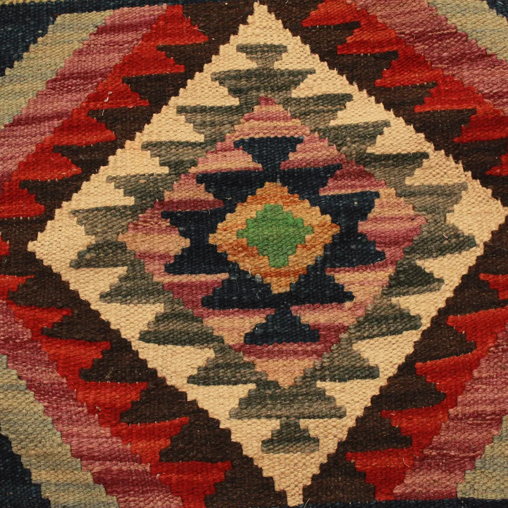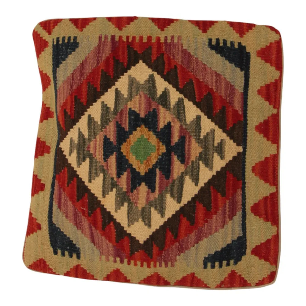 Oglejte si to ročno tkano okrasno blazino Kilim, ki je popolna mešanica tradicionalnega afganistanskega tkanja preprog in elegantnega domačega dekorja. Ta edinstvena prevleka za blazino Kilim bo s svojim elegantnim videzom, bogatimi barvami in osupljivimi vzorci oživila vsako notranjost. Ročno tkana prevleka za blazino je izdelana iz originalne afganistanske preproge Kilim, ki se odlično ujema z različnimi slogi pohištva in notranje opreme. Živahne barve in edinstveni vzorci ustvarijo vznemirljiv vizualni učinek in izboljšajo ambient v vašem prostoru, ne glede na to, ali gre za dnevno sobo ali spalnico. Iz afganistanske volne izdelana prevleka za blazino Kilim je enostavna za čiščenje, zato je vzdrževanje preprosto. Poleg tega trpežnost materiala zagotavlja, da boste v lepoti okrasne blazine Kilim na svojem pohištvu lahko uživali še vrsto let. Barve in vzorci blazine Kilim bodo zaradi temeljitega pranja po postopku tkanja dolgo časa ostali živahni. Ta skrbna obdelava zagotavlja dolgo življenjsko dobo in izvirno lepoto prevleke za blazino. Pisane okrasne blazine Kilim ponujajo široko paleto možnosti za zamisli o notranjem oblikovanju. Ne glede na to, ali želite v sobi ustvariti edinstveno vzdušje ali izboljšati obstoječe pohištvo, je barvita blazina Kilim odlična izbira.