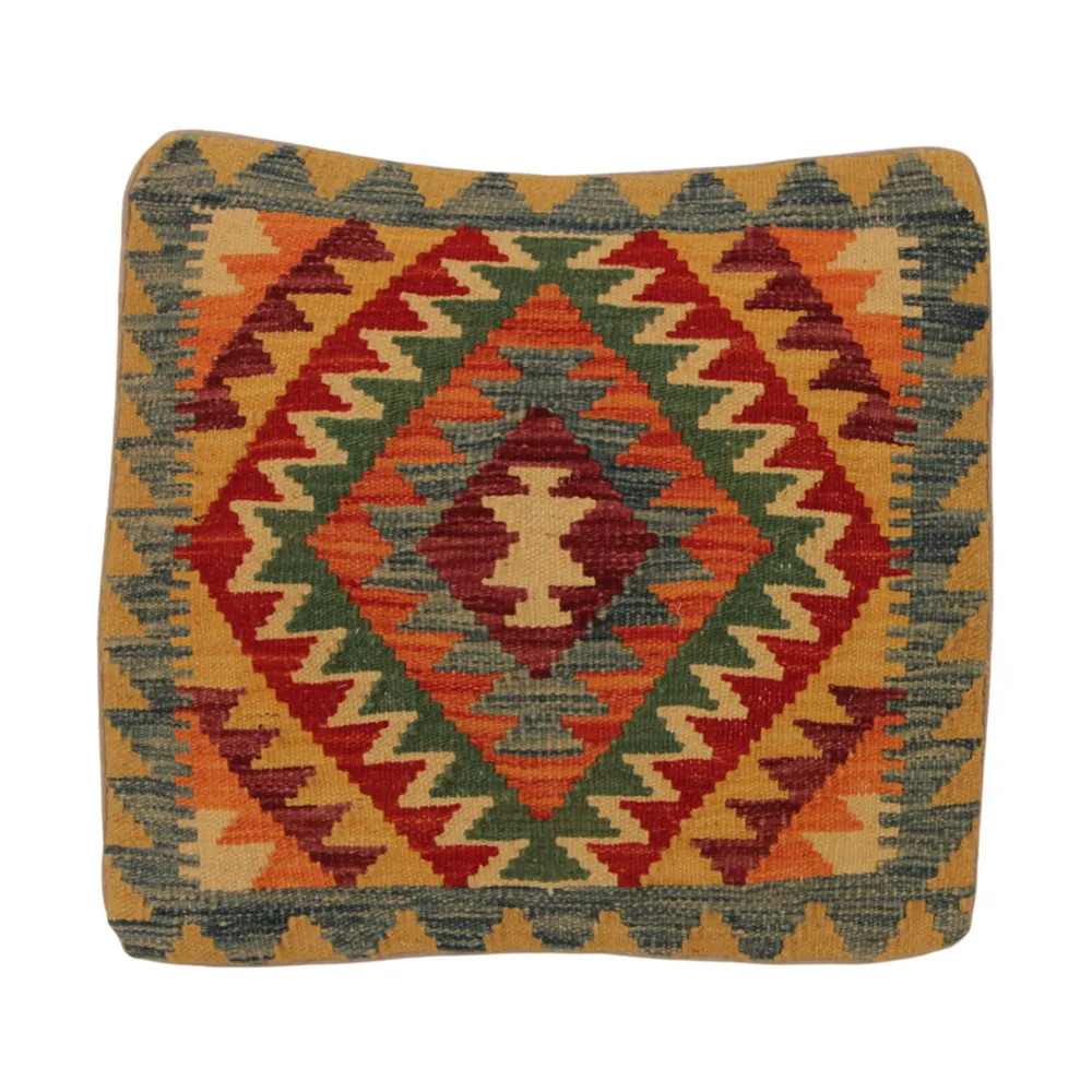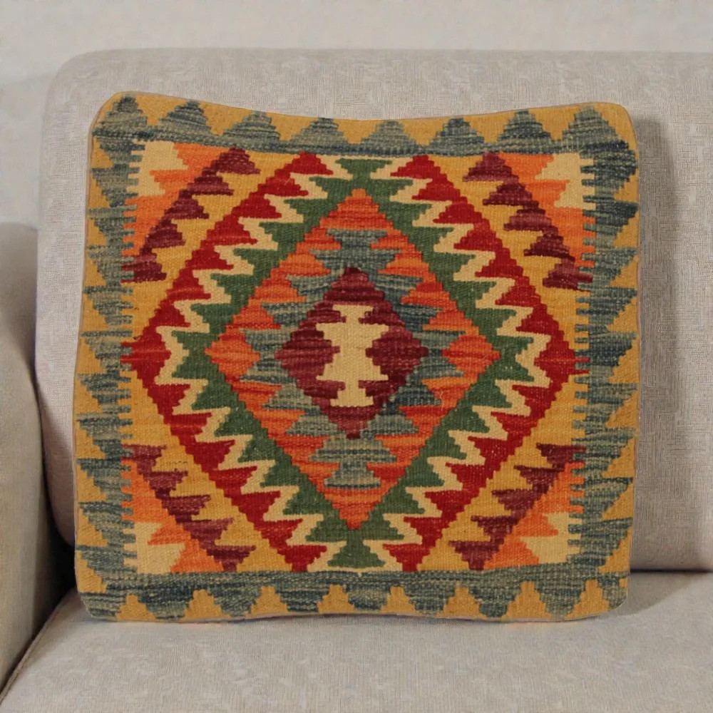 Oglejte si to ročno tkano okrasno blazino Kilim, ki je popolna mešanica tradicionalnega afganistanskega tkanja preprog in elegantnega domačega dekorja. Ta edinstvena prevleka za blazino Kilim bo s svojim elegantnim videzom, bogatimi barvami in osupljivimi vzorci oživila vsako notranjost. Ročno tkana prevleka za blazino je izdelana iz originalne afganistanske preproge Kilim, ki se odlično ujema z različnimi slogi pohištva in notranje opreme. Živahne barve in edinstveni vzorci ustvarijo vznemirljiv vizualni učinek in izboljšajo ambient v vašem prostoru, ne glede na to, ali gre za dnevno sobo ali spalnico. Iz afganistanske volne izdelana prevleka za blazino Kilim je enostavna za čiščenje, zato je vzdrževanje preprosto. Poleg tega trpežnost materiala zagotavlja, da boste v lepoti okrasne blazine Kilim na svojem pohištvu lahko uživali še vrsto let. Barve in vzorci blazine Kilim bodo zaradi temeljitega pranja po postopku tkanja dolgo časa ostali živahni. Ta skrbna obdelava zagotavlja dolgo življenjsko dobo in izvirno lepoto prevleke za blazino. Pisane okrasne blazine Kilim ponujajo široko paleto možnosti za zamisli o notranjem oblikovanju. Ne glede na to, ali želite v sobi ustvariti edinstveno vzdušje ali izboljšati obstoječe pohištvo, je barvita blazina Kilim odlična izbira.
