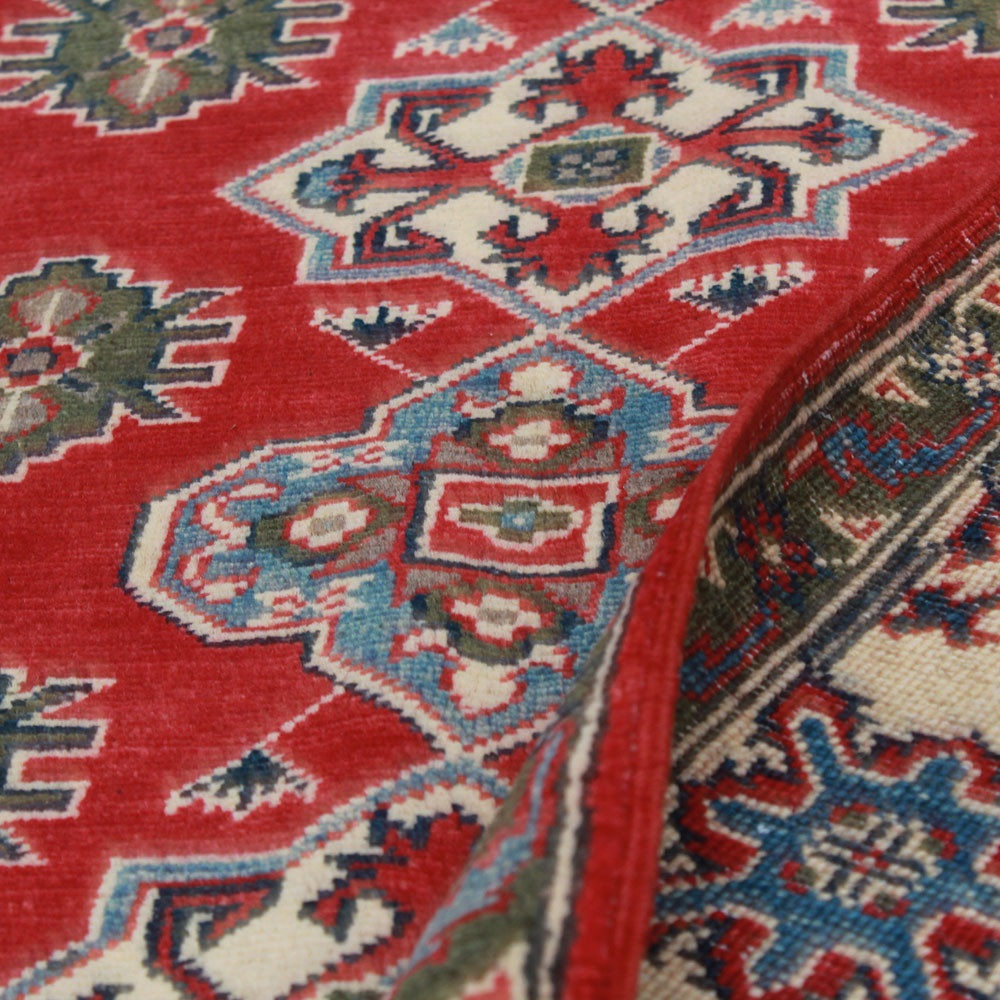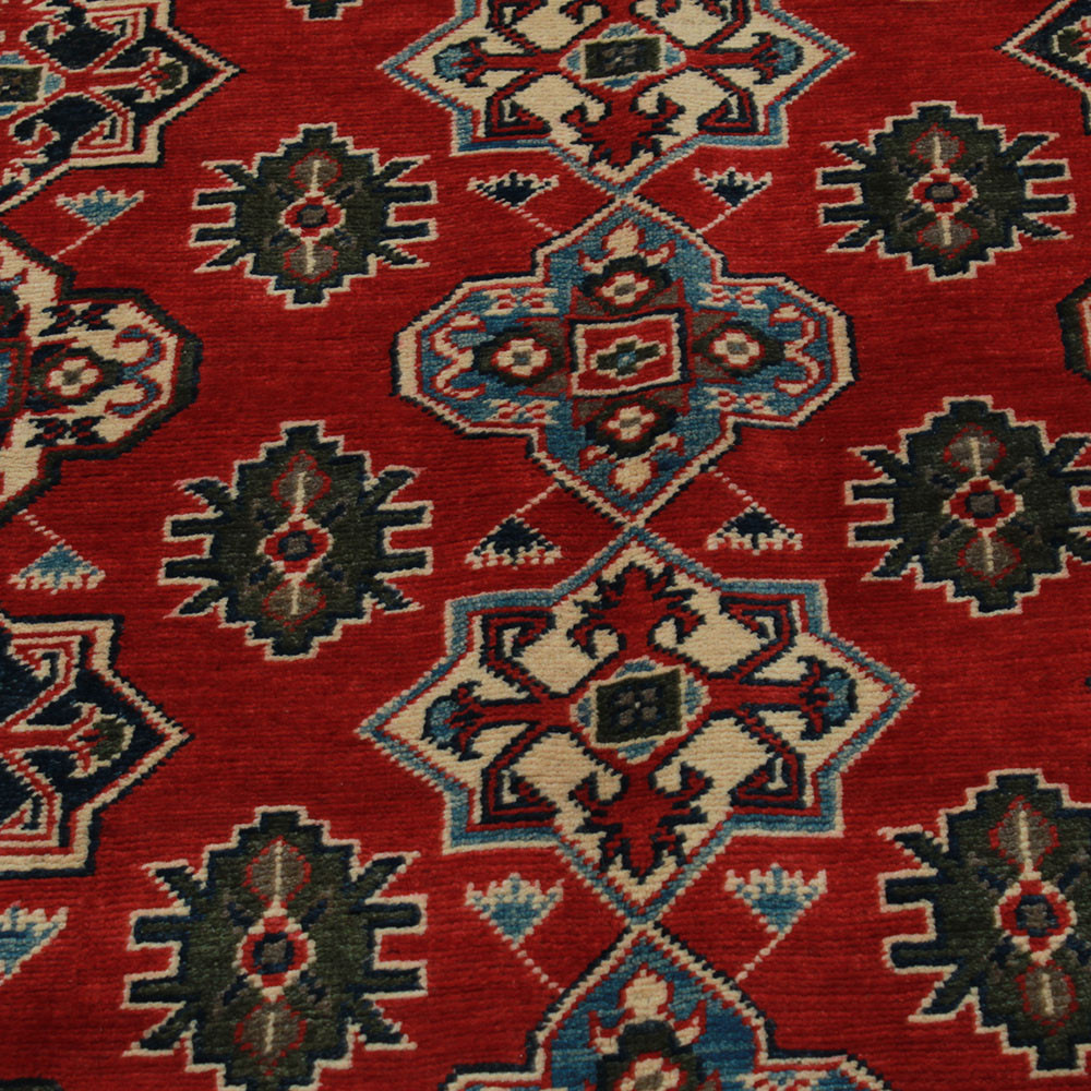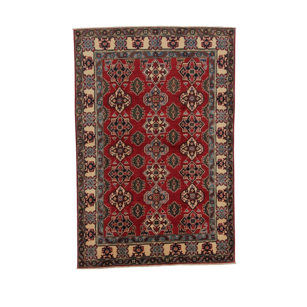 Iščete barvito orientalsko preprogo? Potem si oglejte to preprogo Kazak, ki vas bo očarala s čudovitimi igrivimi barvami. Ta preproga Kazak je trpežna, enostavna za čiščenje in sesanje. Najprimernejša je za prostore s klasično notranjostjo. Ker gre za večbarvno orientalsko preprogo, jo je enostavno uskladiti z barvami pohištva ali drugega tekstila. Ta preproga Kazak je štirikrat oprana in posušena na soncu. Ne vsebuje alergenih snovi. Uporablja se lahko tudi v prostorih s talnim ogrevanjem, vendar je v tem primeru priporočljivo sesati pod preprogo, da se izognete moljem. Barve preproge Kazak so pridobljene iz rastlin v naravi. Preproge Kazak se večinoma izdelujejo v Afganistanu ali v delih Pakistana, kjer živijo Afganistanci. Ker gre za trpežno preprogo, jo je mogoče namestiti tudi v najbolj obremenjene dnevne sobe. Vaši dnevni sobi doda eleganco in prestiž. Preproga Kazak je izdelana iz 100% afganistanske volne. Zanjo so značilni predvsem geometrijski vzorci. To je resnično visokokakovostna ročno vozlana preproga.