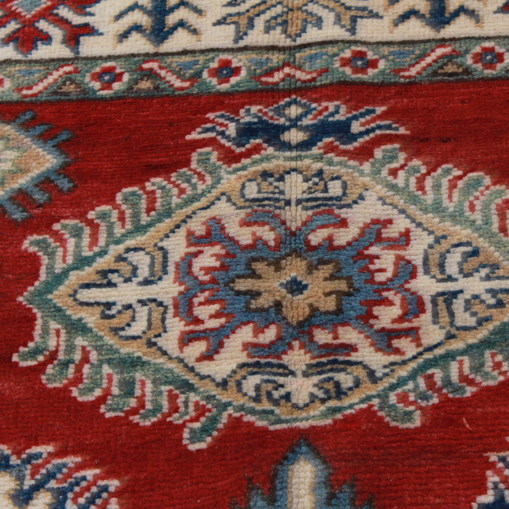 Iščete barvito orientalsko preprogo? Potem si oglejte to preprogo Kazak, ki vas bo očarala s čudovitimi igrivimi barvami. Ta preproga Kazak je trpežna, enostavna za čiščenje in sesanje. Najprimernejša je za prostore s klasično notranjostjo. Ker gre za večbarvno orientalsko preprogo, jo je enostavno uskladiti z barvami pohištva ali drugega tekstila. Ta preproga Kazak je štirikrat oprana in posušena na soncu. Ne vsebuje alergenih snovi. Uporablja se lahko tudi v prostorih s talnim ogrevanjem, vendar je v tem primeru priporočljivo sesati pod preprogo, da se izognete moljem. Barve preproge Kazak so pridobljene iz rastlin v naravi. Preproge Kazak se večinoma izdelujejo v Afganistanu ali v delih Pakistana, kjer živijo Afganistanci. Ker gre za trpežno preprogo, jo je mogoče namestiti tudi v najbolj obremenjene dnevne sobe. Vaši dnevni sobi doda eleganco in prestiž. Preproga Kazak je izdelana iz 100% afganistanske volne. Zanjo so značilni predvsem geometrijski vzorci. To je resnično visokokakovostna ročno vozlana preproga.