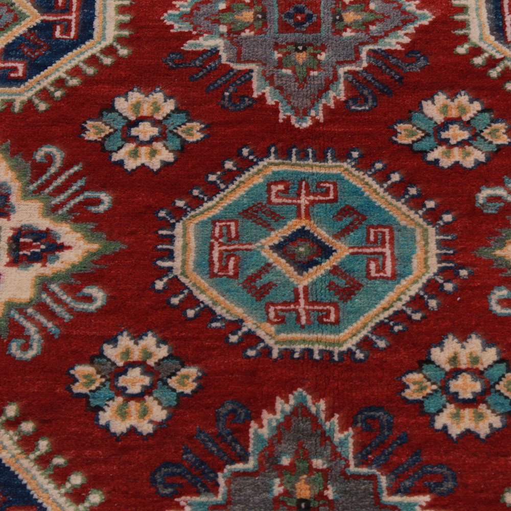 Iščete barvito orientalsko preprogo? Potem si oglejte to preprogo Kazak, ki vas bo očarala s čudovitimi igrivimi barvami. Ta preproga Kazak je trpežna, enostavna za čiščenje in sesanje. Najprimernejša je za prostore s klasično notranjostjo. Ker gre za večbarvno orientalsko preprogo, jo je enostavno uskladiti z barvami pohištva ali drugega tekstila. Ta preproga Kazak je štirikrat oprana in posušena na soncu. Ne vsebuje alergenih snovi. Uporablja se lahko tudi v prostorih s talnim ogrevanjem, vendar je v tem primeru priporočljivo sesati pod preprogo, da se izognete moljem. Barve preproge Kazak so pridobljene iz rastlin v naravi. Preproge Kazak se večinoma izdelujejo v Afganistanu ali v delih Pakistana, kjer živijo Afganistanci. Ker gre za trpežno preprogo, jo je mogoče namestiti tudi v najbolj obremenjene dnevne sobe. Vaši dnevni sobi doda eleganco in prestiž. Preproga Kazak je izdelana iz 100% afganistanske volne. Zanjo so značilni predvsem geometrijski vzorci. To je resnično visokokakovostna ročno vozlana preproga.