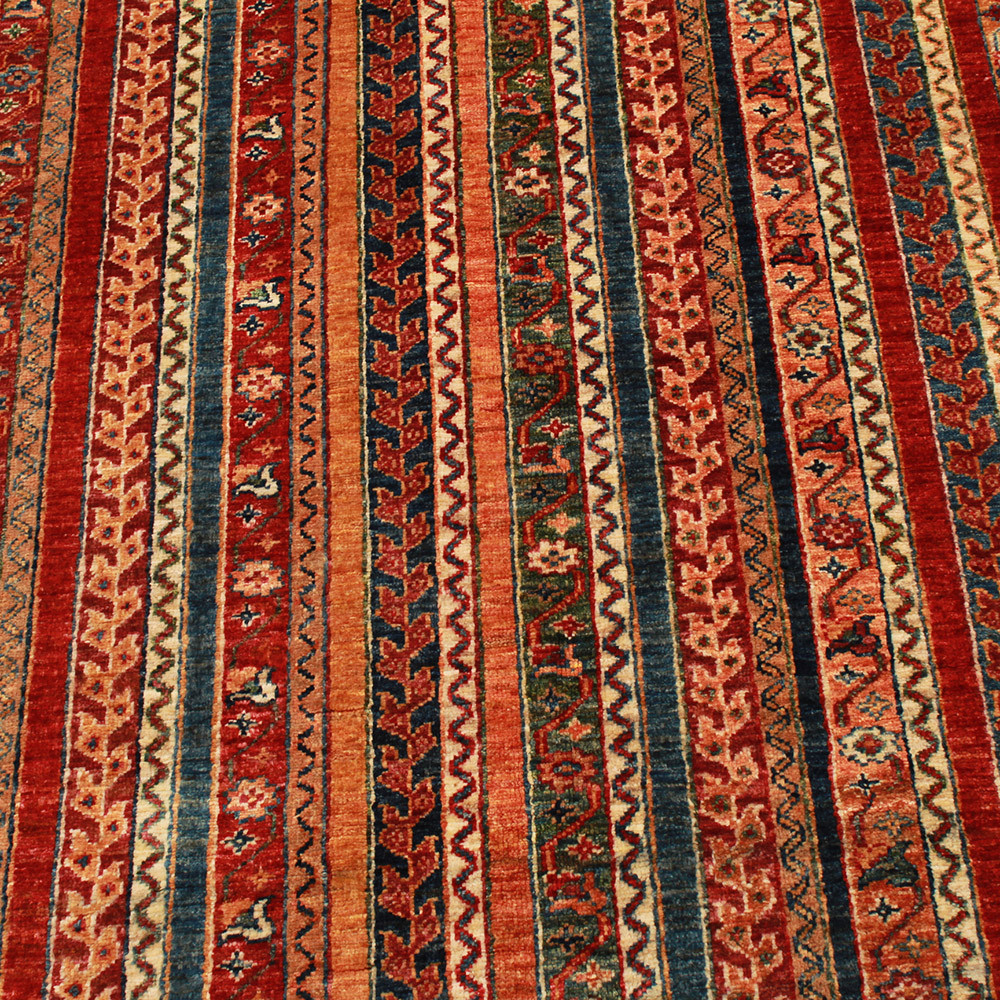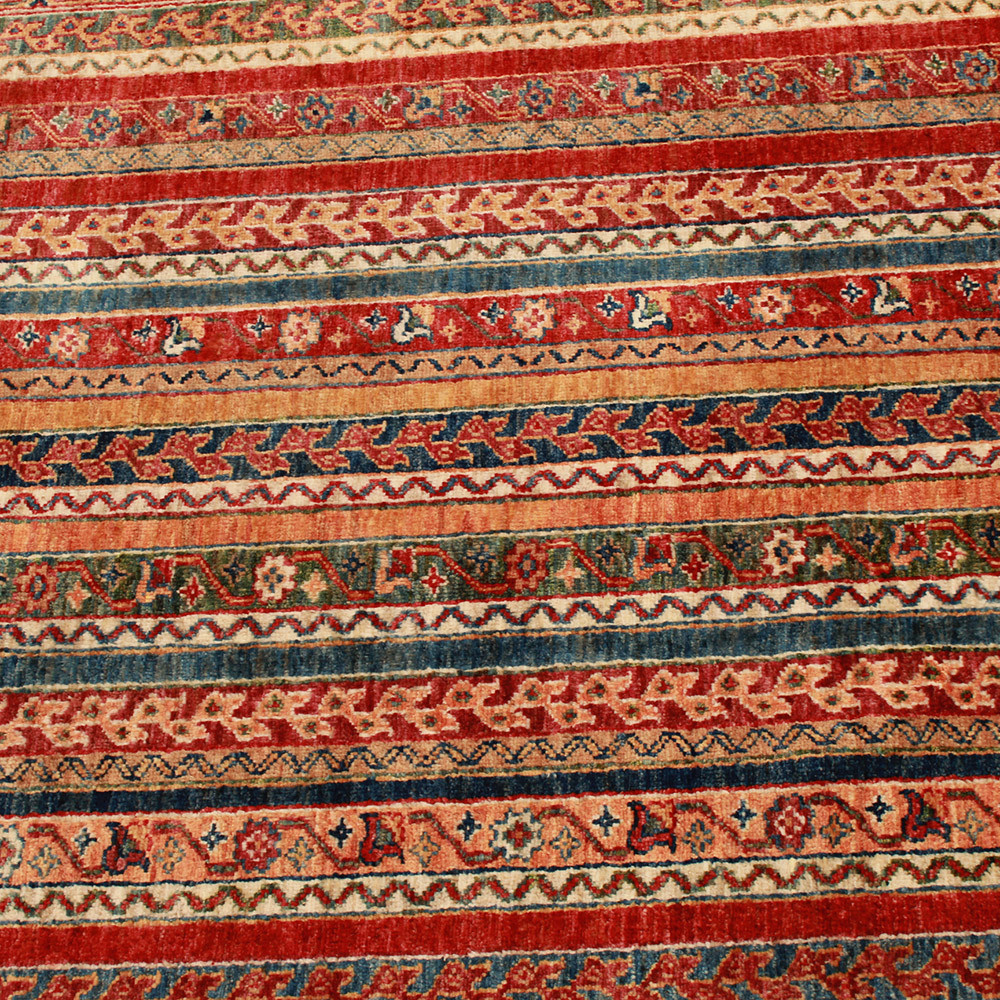 Orientalska preproga Shawal je popolna kombinacija klasične elegance in sodobnosti. Ne glede na to, ali imate raje minimalistični ali klasični slog, je orientalska preproga Shawal odlična za vsako dnevno sobo. Njene igrive barve bodo polepšale razpoloženje v sobi, njena vsestranskost pa omogoča, da se brez težav zlije s pohištvom in drugimi tekstilijami. Ročno vozlana preproga Shawal je izjemno trpežna in dolgotrajna, zato boste lahko še dolgo uživali v njeni lepoti in udobju. Poleg tega ima preproga Shawal lastnosti, ki jih bodo cenili tudi najzahtevnejši kupci. Volnena preproga Shawal, ki so jo v Afganistanu izdelali ljudje, ki živijo v urbanem okolju, izžareva domačnost in udobje, ne glede na to, ali se uporablja kot preproga za dnevno sobo ali kot preproga na hodniku. Raznoliki vzorci in bogate barve preproge so resnično privlačni. Volna je visokokakovostna in izjemno trpežna, zato bo preproga tudi ob intenzivni uporabi dolgo ohranila prvotno stanje. Ročno vozlane preproge Shawal niso le lepe, temveč tudi praktična in dolgotrajna naložba. Izdelava orientalske preproge Shawal zahteva veliko dela in potrpežljivosti. Za barvanje orientalskih preprog se barve pridobivajo iz rastlin in uporabljajo za barvanje volne. Ta orientalska preproga je 100 % ročno vozlana, zato je popolna kombinacija tradicionalne gheordske tehnike vozlanja in mojstrske izdelave. Ko je volnena preproga končana, se štirikrat opere in posuši na soncu, da barve dolgo ohranijo svojo živahnost in obstojnost. Ta skrbna nega in nadzor kakovosti prispevata k visoki kakovosti in dolgi življenjski dobi preproge. Veliko ljudi ima napačno prepričanje, da je preproga tem debelejša, čim boljša in trajnejša je. Vendar je to napačno prepričanje. Debelina je bolj odvisna od striženja, medtem ko je trajnost preproge odvisna od gostote vozlov in kakovosti volne. Ročno vozlana preproga Shawal je kot nalašč za vsak slog dnevne sobe in je lahko s svojim osupljivim videzom pravi dragulj v vašem domu. Drugo ime za volneno preprogo Shawal je preproga Khorjin, zato so tudi po tem imenu postale dobro znane in prepoznavne. Ko naročite volneno preprogo Shawal na spletni strani trgovine s preprogami CarpetDepo, boste zagotovo zadovoljni z njeno kakovostjo in videzom. Če pa se vseeno odločite, da ne izpolnjuje vaših pričakovanj, ne skrbite, poskrbeli bomo za vračilo in povračilo kupnine. Zadovoljstvo naših strank je naša najpomembnejša prednostna naloga.