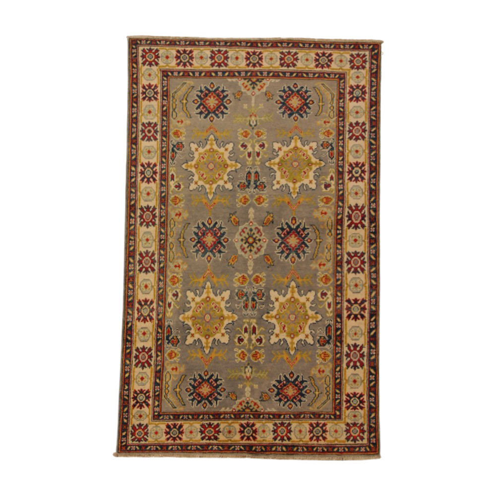 Iščete barvito orientalsko preprogo? Potem si oglejte to preprogo Kazak, ki vas bo očarala s čudovitimi igrivimi barvami. Ta preproga Kazak je trpežna, enostavna za čiščenje in sesanje. Najprimernejša je za prostore s klasično notranjostjo. Ker gre za večbarvno orientalsko preprogo, jo je enostavno uskladiti z barvami pohištva ali drugega tekstila. Ta preproga Kazak je štirikrat oprana in posušena na soncu. Ne vsebuje alergenih snovi. Uporablja se lahko tudi v prostorih s talnim ogrevanjem, vendar je v tem primeru priporočljivo sesati pod preprogo, da se izognete moljem. Barve preproge Kazak so pridobljene iz rastlin v naravi. Preproge Kazak se večinoma izdelujejo v Afganistanu ali v delih Pakistana, kjer živijo Afganistanci. Ker gre za trpežno preprogo, jo je mogoče namestiti tudi v najbolj obremenjene dnevne sobe. Vaši dnevni sobi doda eleganco in prestiž. Preproga Kazak je izdelana iz 100% afganistanske volne. Zanjo so značilni predvsem geometrijski vzorci. To je resnično visokokakovostna ročno vozlana preproga.