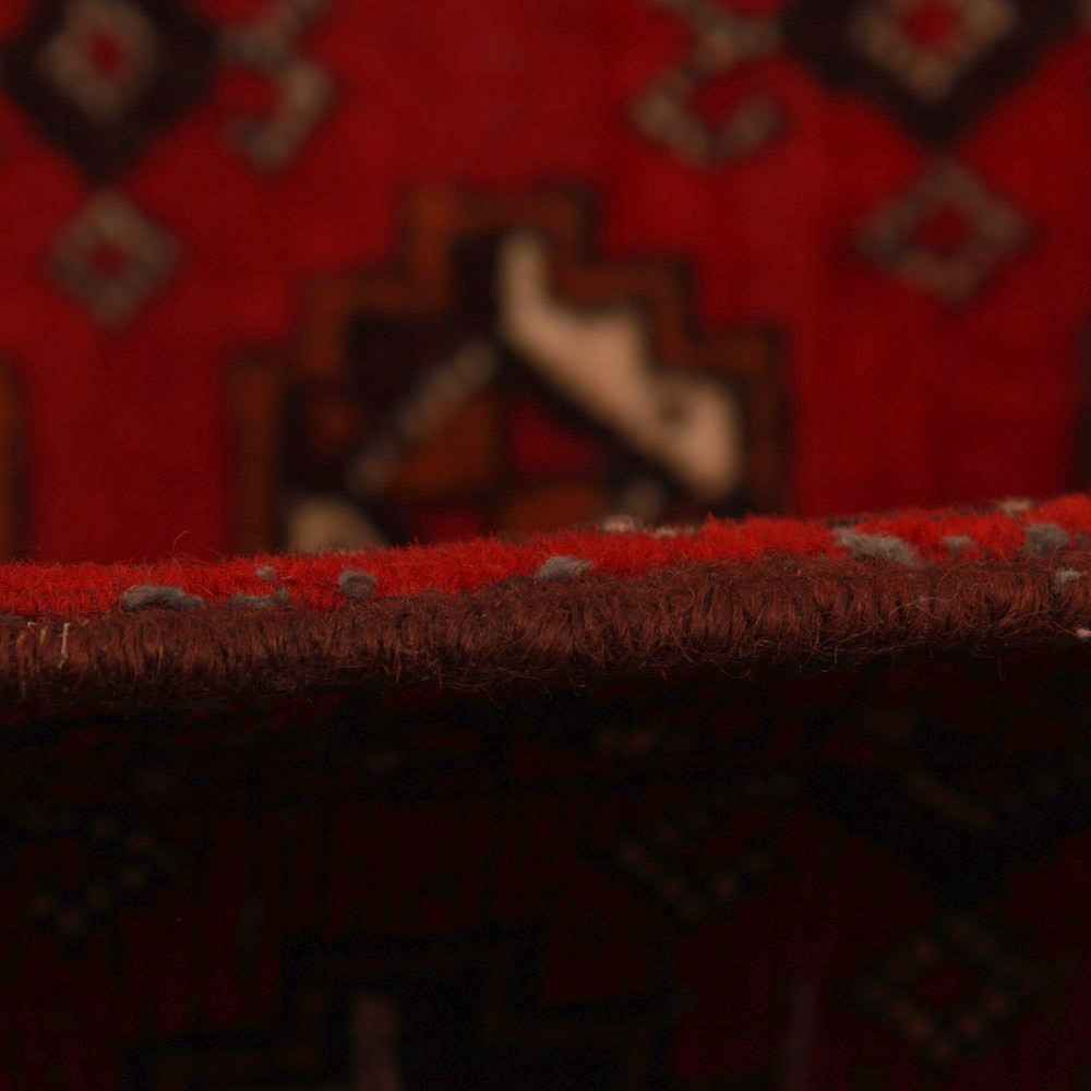 Če iščete avtentično preprogo z izrazitim značajem, ki je hkrati dekorativna in praktična, je ta Turkmen preproga odlična izbira. Majhna preproga, imenovana "Balisht Nakhsha", je povezana z iransko regijo Mashhad in je bila prvotno znana kot plemenski predmet (uporabljala se je kot blazina/prevleka za blazino). Danes je vse bolj priljubljena kot preproga z drznim vzorcem, ki jo lahko položite kamor koli. Ročno vozlana preproga je eno najpomembnejših jamstev za trajnost in bogastvo detajlov.