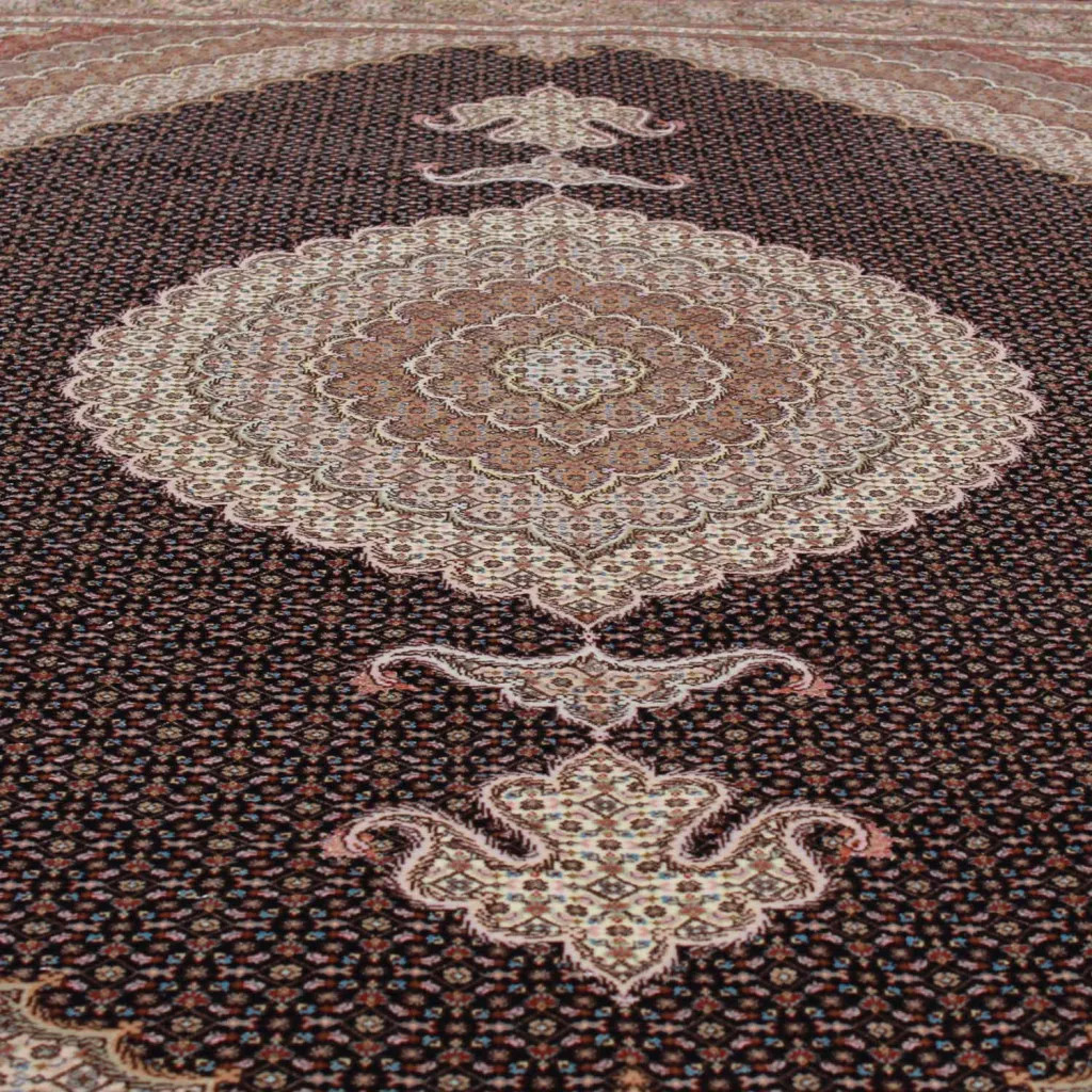 Preproge Tabriz so izjemen primer iranske obrti, ki jo poznajo in občudujejo po vsem svetu. Te perzijske preproge slovijo po odlični izdelavi in bogati zgodovini, ki sega več sto let nazaj. Ime so dobile po mestu Tabriz, enem najpomembnejših središč za tkanje preprog v Iranu. Te preproge ne slovijo le po natančnih tehnikah ročne izdelave, temveč tudi po edinstvenih vzorcih, ki jih pogosto krasijo zapleteni geometrijski in cvetlični motivi. Preproge Tabriz so izdelane z veliko skrbnostjo in strokovnim znanjem ter temeljijo na večstoletni tradiciji. Zaradi finih materialov in gostega vozlanja niso le čudovite, ampak tudi izjemno trpežne. Preproge Tabriz so različnih barv in motivov, najpogostejši pa so motivi medaljonov in značilen vzorec Mahi (riba), ki spominja na klasični perzijski slog. Tabriz ima dolgo zgodovino izdelovanja preprog, ki so pomemben del perzijske kulture in umetnosti. Preproge Tabriz so zaradi visoke kakovosti in umetniške vrednosti pridobile mednarodno priznanje ne le v Iranu, temveč tudi na mednarodni ravni. Te preproge niso le uporabni predmeti, temveč prave umetnine, ki odražajo bogastvo in zgodovino perzijske kulture.