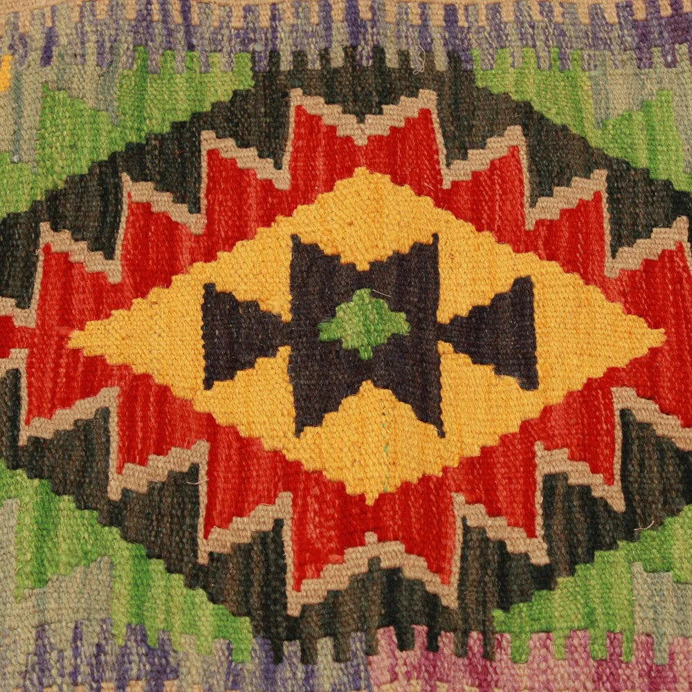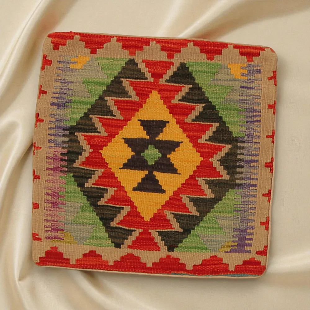 Oglejte si to ročno tkano okrasno blazino Kilim, ki je popolna mešanica tradicionalnega afganistanskega tkanja preprog in elegantnega domačega dekorja. Ta edinstvena prevleka za blazino Kilim bo s svojim elegantnim videzom, bogatimi barvami in osupljivimi vzorci oživila vsako notranjost. Ročno tkana prevleka za blazino je izdelana iz originalne afganistanske preproge Kilim, ki se odlično ujema z različnimi slogi pohištva in notranje opreme. Živahne barve in edinstveni vzorci ustvarijo vznemirljiv vizualni učinek in izboljšajo ambient v vašem prostoru, ne glede na to, ali gre za dnevno sobo ali spalnico. Iz afganistanske volne izdelana prevleka za blazino Kilim je enostavna za čiščenje, zato je vzdrževanje preprosto. Poleg tega trpežnost materiala zagotavlja, da boste v lepoti okrasne blazine Kilim na svojem pohištvu lahko uživali še vrsto let. Barve in vzorci blazine Kilim bodo zaradi temeljitega pranja po postopku tkanja dolgo časa ostali živahni. Ta skrbna obdelava zagotavlja dolgo življenjsko dobo in izvirno lepoto prevleke za blazino. Pisane okrasne blazine Kilim ponujajo široko paleto možnosti za zamisli o notranjem oblikovanju. Ne glede na to, ali želite v sobi ustvariti edinstveno vzdušje ali izboljšati obstoječe pohištvo, je barvita blazina Kilim odlična izbira.
