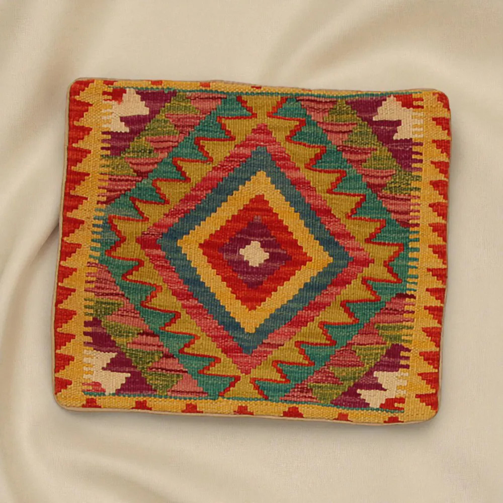 Oglejte si to ročno tkano okrasno blazino Kilim, ki je popolna mešanica tradicionalnega afganistanskega tkanja preprog in elegantnega domačega dekorja. Ta edinstvena prevleka za blazino Kilim bo s svojim elegantnim videzom, bogatimi barvami in osupljivimi vzorci oživila vsako notranjost. Ročno tkana prevleka za blazino je izdelana iz originalne afganistanske preproge Kilim, ki se odlično ujema z različnimi slogi pohištva in notranje opreme. Živahne barve in edinstveni vzorci ustvarijo vznemirljiv vizualni učinek in izboljšajo ambient v vašem prostoru, ne glede na to, ali gre za dnevno sobo ali spalnico. Iz afganistanske volne izdelana prevleka za blazino Kilim je enostavna za čiščenje, zato je vzdrževanje preprosto. Poleg tega trpežnost materiala zagotavlja, da boste v lepoti okrasne blazine Kilim na svojem pohištvu lahko uživali še vrsto let. Barve in vzorci blazine Kilim bodo zaradi temeljitega pranja po postopku tkanja dolgo časa ostali živahni. Ta skrbna obdelava zagotavlja dolgo življenjsko dobo in izvirno lepoto prevleke za blazino. Pisane okrasne blazine Kilim ponujajo široko paleto možnosti za zamisli o notranjem oblikovanju. Ne glede na to, ali želite v sobi ustvariti edinstveno vzdušje ali izboljšati obstoječe pohištvo, je barvita blazina Kilim odlična izbira.