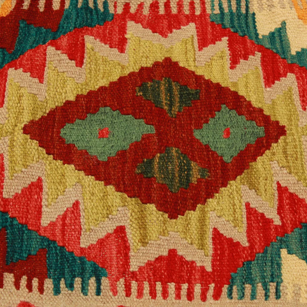 Oglejte si to ročno tkano okrasno blazino Kilim, ki je popolna mešanica tradicionalnega afganistanskega tkanja preprog in elegantnega domačega dekorja. Ta edinstvena prevleka za blazino Kilim bo s svojim elegantnim videzom, bogatimi barvami in osupljivimi vzorci oživila vsako notranjost. Ročno tkana prevleka za blazino je izdelana iz originalne afganistanske preproge Kilim, ki se odlično ujema z različnimi slogi pohištva in notranje opreme. Živahne barve in edinstveni vzorci ustvarijo vznemirljiv vizualni učinek in izboljšajo ambient v vašem prostoru, ne glede na to, ali gre za dnevno sobo ali spalnico. Iz afganistanske volne izdelana prevleka za blazino Kilim je enostavna za čiščenje, zato je vzdrževanje preprosto. Poleg tega trpežnost materiala zagotavlja, da boste v lepoti okrasne blazine Kilim na svojem pohištvu lahko uživali še vrsto let. Barve in vzorci blazine Kilim bodo zaradi temeljitega pranja po postopku tkanja dolgo časa ostali živahni. Ta skrbna obdelava zagotavlja dolgo življenjsko dobo in izvirno lepoto prevleke za blazino. Pisane okrasne blazine Kilim ponujajo široko paleto možnosti za zamisli o notranjem oblikovanju. Ne glede na to, ali želite v sobi ustvariti edinstveno vzdušje ali izboljšati obstoječe pohištvo, je barvita blazina Kilim odlična izbira.