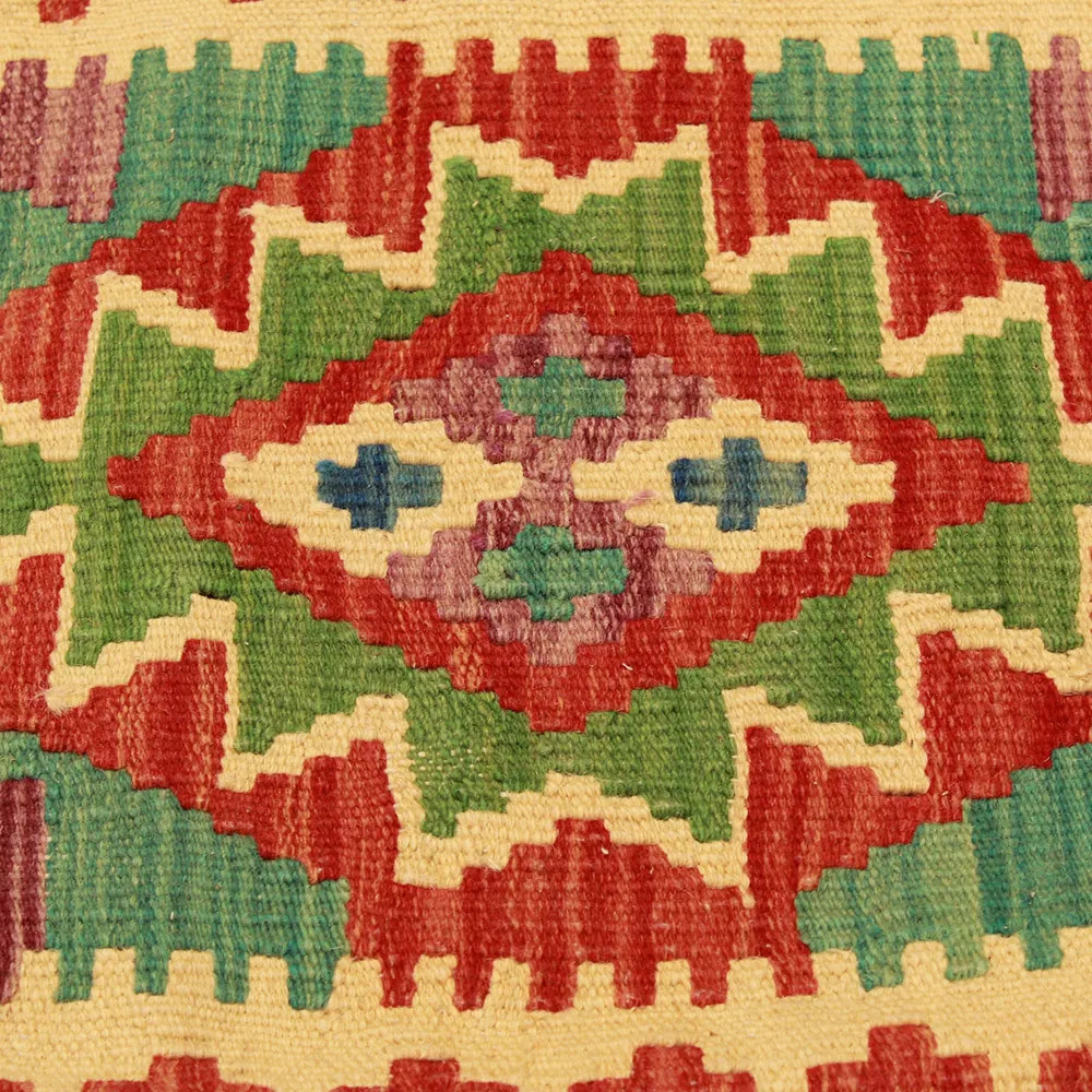 Oglejte si to ročno tkano okrasno blazino Kilim, ki je popolna mešanica tradicionalnega afganistanskega tkanja preprog in elegantnega domačega dekorja. Ta edinstvena prevleka za blazino Kilim bo s svojim elegantnim videzom, bogatimi barvami in osupljivimi vzorci oživila vsako notranjost. Ročno tkana prevleka za blazino je izdelana iz originalne afganistanske preproge Kilim, ki se odlično ujema z različnimi slogi pohištva in notranje opreme. Živahne barve in edinstveni vzorci ustvarijo vznemirljiv vizualni učinek in izboljšajo ambient v vašem prostoru, ne glede na to, ali gre za dnevno sobo ali spalnico. Iz afganistanske volne izdelana prevleka za blazino Kilim je enostavna za čiščenje, zato je vzdrževanje preprosto. Poleg tega trpežnost materiala zagotavlja, da boste v lepoti okrasne blazine Kilim na svojem pohištvu lahko uživali še vrsto let. Barve in vzorci blazine Kilim bodo zaradi temeljitega pranja po postopku tkanja dolgo časa ostali živahni. Ta skrbna obdelava zagotavlja dolgo življenjsko dobo in izvirno lepoto prevleke za blazino. Pisane okrasne blazine Kilim ponujajo široko paleto možnosti za zamisli o notranjem oblikovanju. Ne glede na to, ali želite v sobi ustvariti edinstveno vzdušje ali izboljšati obstoječe pohištvo, je barvita blazina Kilim odlična izbira.