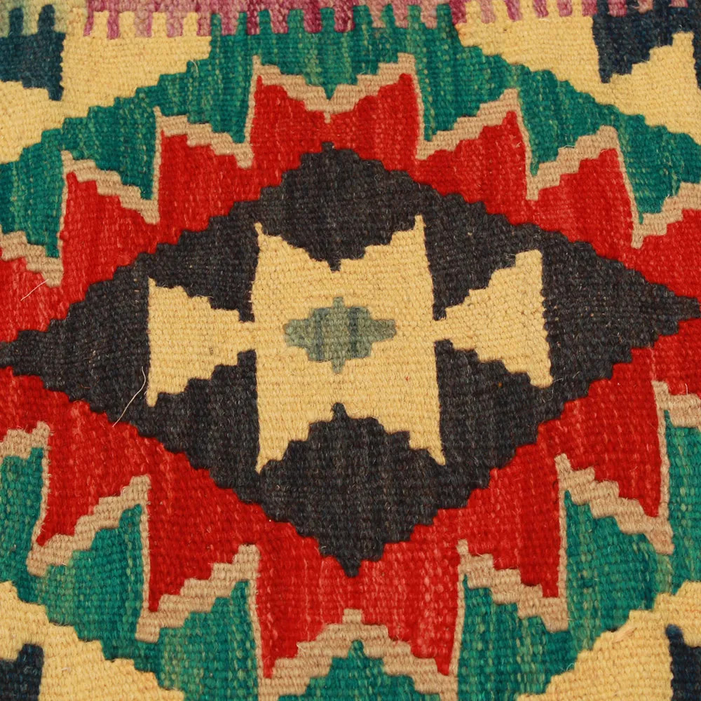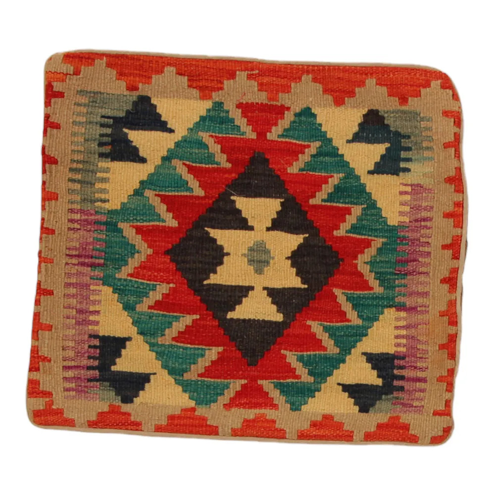 Oglejte si to ročno tkano okrasno blazino Kilim, ki je popolna mešanica tradicionalnega afganistanskega tkanja preprog in elegantnega domačega dekorja. Ta edinstvena prevleka za blazino Kilim bo s svojim elegantnim videzom, bogatimi barvami in osupljivimi vzorci oživila vsako notranjost. Ročno tkana prevleka za blazino je izdelana iz originalne afganistanske preproge Kilim, ki se odlično ujema z različnimi slogi pohištva in notranje opreme. Živahne barve in edinstveni vzorci ustvarijo vznemirljiv vizualni učinek in izboljšajo ambient v vašem prostoru, ne glede na to, ali gre za dnevno sobo ali spalnico. Iz afganistanske volne izdelana prevleka za blazino Kilim je enostavna za čiščenje, zato je vzdrževanje preprosto. Poleg tega trpežnost materiala zagotavlja, da boste v lepoti okrasne blazine Kilim na svojem pohištvu lahko uživali še vrsto let. Barve in vzorci blazine Kilim bodo zaradi temeljitega pranja po postopku tkanja dolgo časa ostali živahni. Ta skrbna obdelava zagotavlja dolgo življenjsko dobo in izvirno lepoto prevleke za blazino. Pisane okrasne blazine Kilim ponujajo široko paleto možnosti za zamisli o notranjem oblikovanju. Ne glede na to, ali želite v sobi ustvariti edinstveno vzdušje ali izboljšati obstoječe pohištvo, je barvita blazina Kilim odlična izbira.