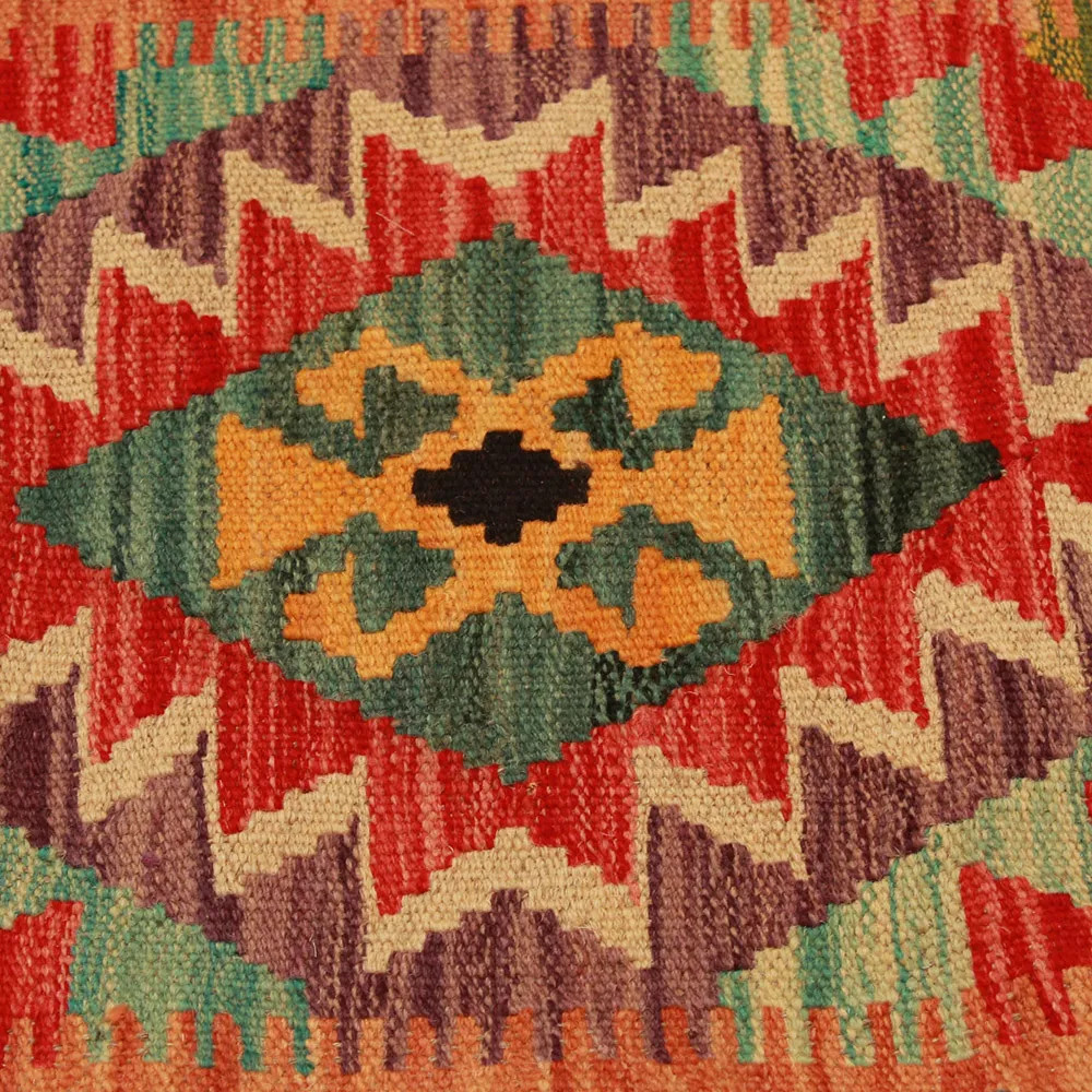Oglejte si to ročno tkano okrasno blazino Kilim, ki je popolna mešanica tradicionalnega afganistanskega tkanja preprog in elegantnega domačega dekorja. Ta edinstvena prevleka za blazino Kilim bo s svojim elegantnim videzom, bogatimi barvami in osupljivimi vzorci oživila vsako notranjost. Ročno tkana prevleka za blazino je izdelana iz originalne afganistanske preproge Kilim, ki se odlično ujema z različnimi slogi pohištva in notranje opreme. Živahne barve in edinstveni vzorci ustvarijo vznemirljiv vizualni učinek in izboljšajo ambient v vašem prostoru, ne glede na to, ali gre za dnevno sobo ali spalnico. Iz afganistanske volne izdelana prevleka za blazino Kilim je enostavna za čiščenje, zato je vzdrževanje preprosto. Poleg tega trpežnost materiala zagotavlja, da boste v lepoti okrasne blazine Kilim na svojem pohištvu lahko uživali še vrsto let. Barve in vzorci blazine Kilim bodo zaradi temeljitega pranja po postopku tkanja dolgo časa ostali živahni. Ta skrbna obdelava zagotavlja dolgo življenjsko dobo in izvirno lepoto prevleke za blazino. Pisane okrasne blazine Kilim ponujajo široko paleto možnosti za zamisli o notranjem oblikovanju. Ne glede na to, ali želite v sobi ustvariti edinstveno vzdušje ali izboljšati obstoječe pohištvo, je barvita blazina Kilim odlična izbira.