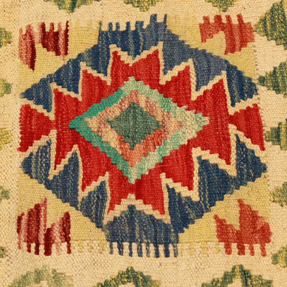 Oglejte si to ročno tkano okrasno blazino Kilim, ki je popolna mešanica tradicionalnega afganistanskega tkanja preprog in elegantnega domačega dekorja. Ta edinstvena prevleka za blazino Kilim bo s svojim elegantnim videzom, bogatimi barvami in osupljivimi vzorci oživila vsako notranjost. Ročno tkana prevleka za blazino je izdelana iz originalne afganistanske preproge Kilim, ki se odlično ujema z različnimi slogi pohištva in notranje opreme. Živahne barve in edinstveni vzorci ustvarijo vznemirljiv vizualni učinek in izboljšajo ambient v vašem prostoru, ne glede na to, ali gre za dnevno sobo ali spalnico. Iz afganistanske volne izdelana prevleka za blazino Kilim je enostavna za čiščenje, zato je vzdrževanje preprosto. Poleg tega trpežnost materiala zagotavlja, da boste v lepoti okrasne blazine Kilim na svojem pohištvu lahko uživali še vrsto let. Barve in vzorci blazine Kilim bodo zaradi temeljitega pranja po postopku tkanja dolgo časa ostali živahni. Ta skrbna obdelava zagotavlja dolgo življenjsko dobo in izvirno lepoto prevleke za blazino. Pisane okrasne blazine Kilim ponujajo široko paleto možnosti za zamisli o notranjem oblikovanju. Ne glede na to, ali želite v sobi ustvariti edinstveno vzdušje ali izboljšati obstoječe pohištvo, je barvita blazina Kilim odlična izbira.