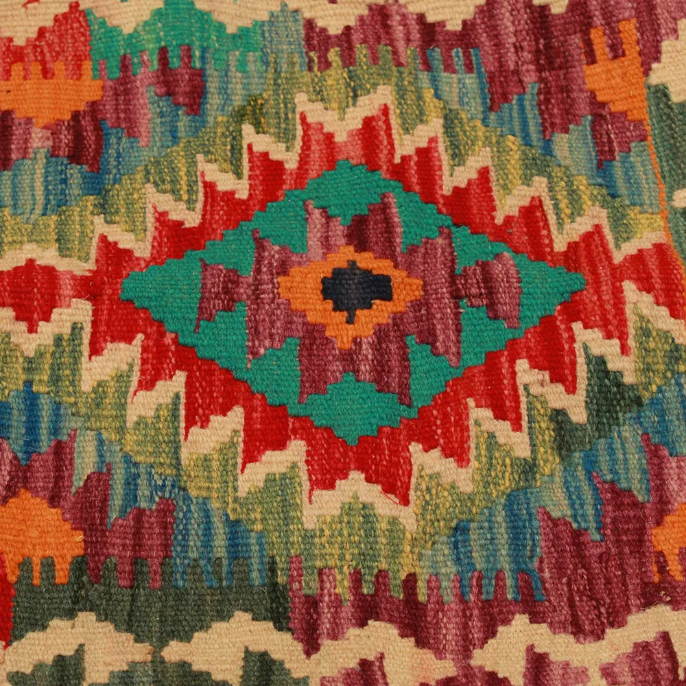 Oglejte si to ročno tkano okrasno blazino Kilim, ki je popolna mešanica tradicionalnega afganistanskega tkanja preprog in elegantnega domačega dekorja. Ta edinstvena prevleka za blazino Kilim bo s svojim elegantnim videzom, bogatimi barvami in osupljivimi vzorci oživila vsako notranjost. Ročno tkana prevleka za blazino je izdelana iz originalne afganistanske preproge Kilim, ki se odlično ujema z različnimi slogi pohištva in notranje opreme. Živahne barve in edinstveni vzorci ustvarijo vznemirljiv vizualni učinek in izboljšajo ambient v vašem prostoru, ne glede na to, ali gre za dnevno sobo ali spalnico. Iz afganistanske volne izdelana prevleka za blazino Kilim je enostavna za čiščenje, zato je vzdrževanje preprosto. Poleg tega trpežnost materiala zagotavlja, da boste v lepoti okrasne blazine Kilim na svojem pohištvu lahko uživali še vrsto let. Barve in vzorci blazine Kilim bodo zaradi temeljitega pranja po postopku tkanja dolgo časa ostali živahni. Ta skrbna obdelava zagotavlja dolgo življenjsko dobo in izvirno lepoto prevleke za blazino. Pisane okrasne blazine Kilim ponujajo široko paleto možnosti za zamisli o notranjem oblikovanju. Ne glede na to, ali želite v sobi ustvariti edinstveno vzdušje ali izboljšati obstoječe pohištvo, je barvita blazina Kilim odlična izbira.