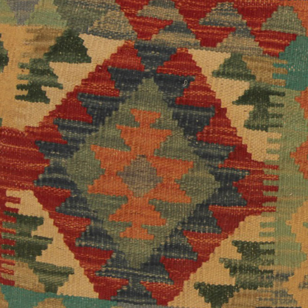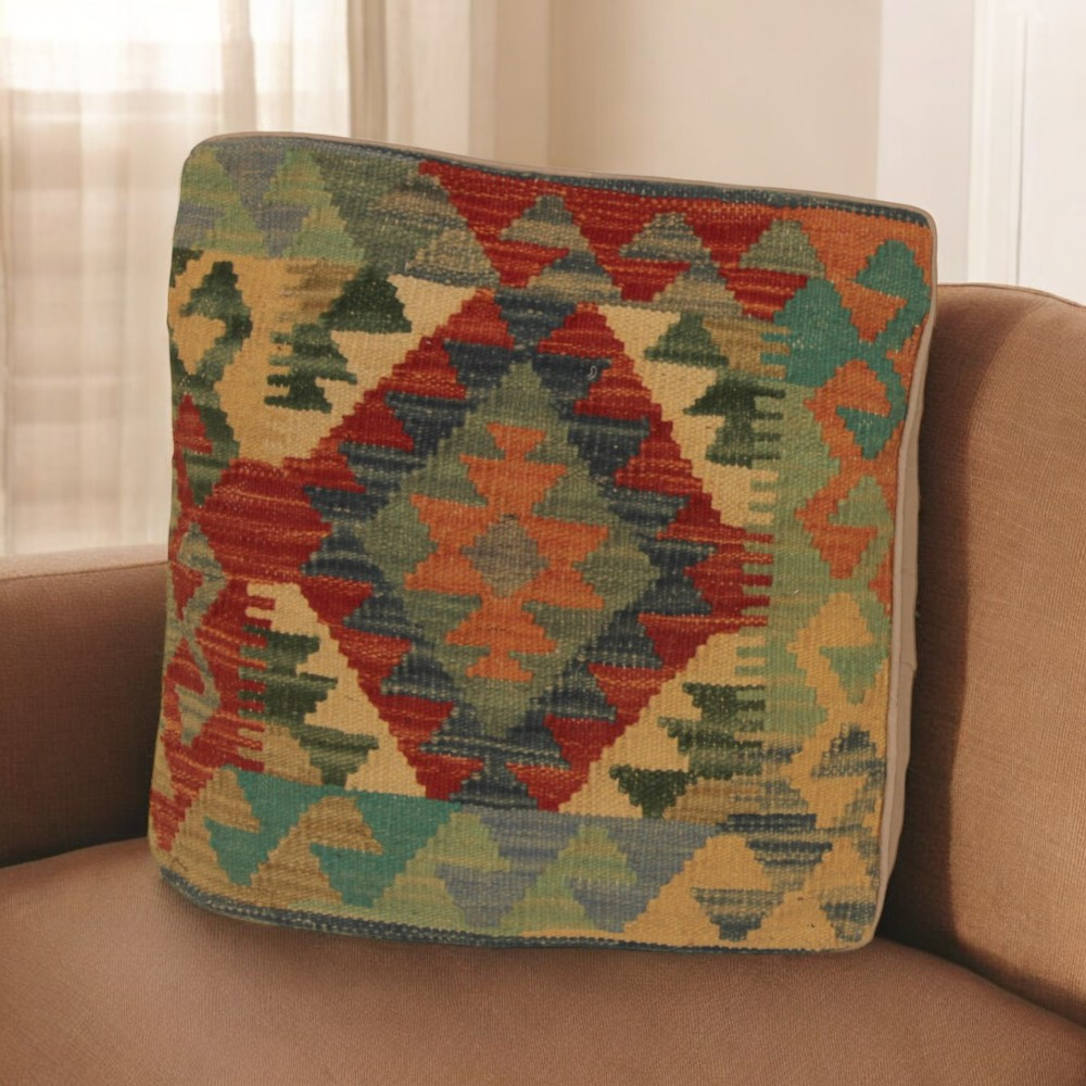 Oglejte si to ročno tkano okrasno blazino Kilim, ki je popolna mešanica tradicionalnega afganistanskega tkanja preprog in elegantnega domačega dekorja. Ta edinstvena prevleka za blazino Kilim bo s svojim elegantnim videzom, bogatimi barvami in osupljivimi vzorci oživila vsako notranjost. Ročno tkana prevleka za blazino je izdelana iz originalne afganistanske preproge Kilim, ki se odlično ujema z različnimi slogi pohištva in notranje opreme. Živahne barve in edinstveni vzorci ustvarijo vznemirljiv vizualni učinek in izboljšajo ambient v vašem prostoru, ne glede na to, ali gre za dnevno sobo ali spalnico. Iz afganistanske volne izdelana prevleka za blazino Kilim je enostavna za čiščenje, zato je vzdrževanje preprosto. Poleg tega trpežnost materiala zagotavlja, da boste v lepoti okrasne blazine Kilim na svojem pohištvu lahko uživali še vrsto let. Barve in vzorci blazine Kilim bodo zaradi temeljitega pranja po postopku tkanja dolgo časa ostali živahni. Ta skrbna obdelava zagotavlja dolgo življenjsko dobo in izvirno lepoto prevleke za blazino. Pisane okrasne blazine Kilim ponujajo široko paleto možnosti za zamisli o notranjem oblikovanju. Ne glede na to, ali želite v sobi ustvariti edinstveno vzdušje ali izboljšati obstoječe pohištvo, je barvita blazina Kilim odlična izbira.