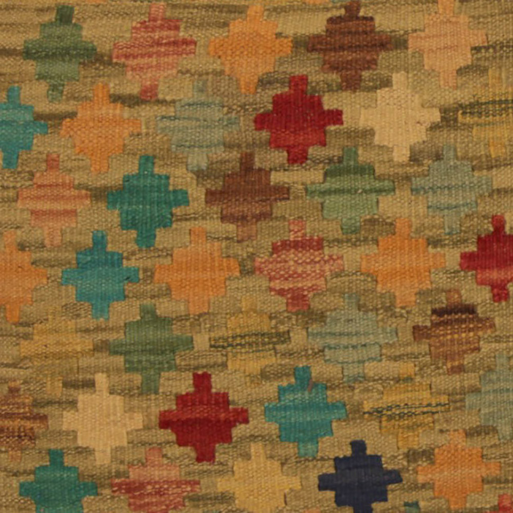 Oglejte si to ročno tkano okrasno blazino Kilim, ki je popolna mešanica tradicionalnega afganistanskega tkanja preprog in elegantnega domačega dekorja. Ta edinstvena prevleka za blazino Kilim bo s svojim elegantnim videzom, bogatimi barvami in osupljivimi vzorci oživila vsako notranjost. Ročno tkana prevleka za blazino je izdelana iz originalne afganistanske preproge Kilim, ki se odlično ujema z različnimi slogi pohištva in notranje opreme. Živahne barve in edinstveni vzorci ustvarijo vznemirljiv vizualni učinek in izboljšajo ambient v vašem prostoru, ne glede na to, ali gre za dnevno sobo ali spalnico. Iz afganistanske volne izdelana prevleka za blazino Kilim je enostavna za čiščenje, zato je vzdrževanje preprosto. Poleg tega trpežnost materiala zagotavlja, da boste v lepoti okrasne blazine Kilim na svojem pohištvu lahko uživali še vrsto let. Barve in vzorci blazine Kilim bodo zaradi temeljitega pranja po postopku tkanja dolgo časa ostali živahni. Ta skrbna obdelava zagotavlja dolgo življenjsko dobo in izvirno lepoto prevleke za blazino. Pisane okrasne blazine Kilim ponujajo široko paleto možnosti za zamisli o notranjem oblikovanju. Ne glede na to, ali želite v sobi ustvariti edinstveno vzdušje ali izboljšati obstoječe pohištvo, je barvita blazina Kilim odlična izbira.