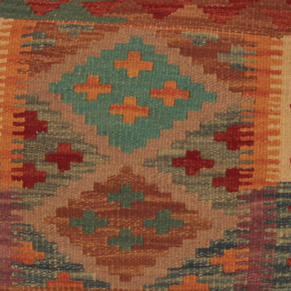 Oglejte si to ročno tkano okrasno blazino Kilim, ki je popolna mešanica tradicionalnega afganistanskega tkanja preprog in elegantnega domačega dekorja. Ta edinstvena prevleka za blazino Kilim bo s svojim elegantnim videzom, bogatimi barvami in osupljivimi vzorci oživila vsako notranjost. Ročno tkana prevleka za blazino je izdelana iz originalne afganistanske preproge Kilim, ki se odlično ujema z različnimi slogi pohištva in notranje opreme. Živahne barve in edinstveni vzorci ustvarijo vznemirljiv vizualni učinek in izboljšajo ambient v vašem prostoru, ne glede na to, ali gre za dnevno sobo ali spalnico. Iz afganistanske volne izdelana prevleka za blazino Kilim je enostavna za čiščenje, zato je vzdrževanje preprosto. Poleg tega trpežnost materiala zagotavlja, da boste v lepoti okrasne blazine Kilim na svojem pohištvu lahko uživali še vrsto let. Barve in vzorci blazine Kilim bodo zaradi temeljitega pranja po postopku tkanja dolgo časa ostali živahni. Ta skrbna obdelava zagotavlja dolgo življenjsko dobo in izvirno lepoto prevleke za blazino. Pisane okrasne blazine Kilim ponujajo široko paleto možnosti za zamisli o notranjem oblikovanju. Ne glede na to, ali želite v sobi ustvariti edinstveno vzdušje ali izboljšati obstoječe pohištvo, je barvita blazina Kilim odlična izbira.