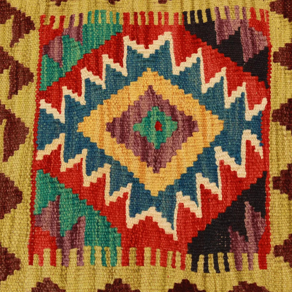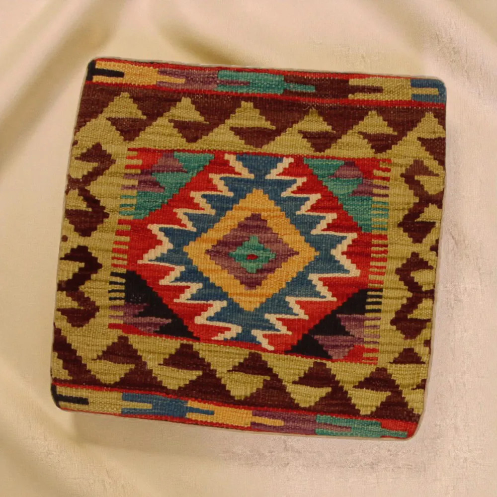 Oglejte si to ročno tkano okrasno blazino Kilim, ki je popolna mešanica tradicionalnega afganistanskega tkanja preprog in elegantnega domačega dekorja. Ta edinstvena prevleka za blazino Kilim bo s svojim elegantnim videzom, bogatimi barvami in osupljivimi vzorci oživila vsako notranjost. Ročno tkana prevleka za blazino je izdelana iz originalne afganistanske preproge Kilim, ki se odlično ujema z različnimi slogi pohištva in notranje opreme. Živahne barve in edinstveni vzorci ustvarijo vznemirljiv vizualni učinek in izboljšajo ambient v vašem prostoru, ne glede na to, ali gre za dnevno sobo ali spalnico. Iz afganistanske volne izdelana prevleka za blazino Kilim je enostavna za čiščenje, zato je vzdrževanje preprosto. Poleg tega trpežnost materiala zagotavlja, da boste v lepoti okrasne blazine Kilim na svojem pohištvu lahko uživali še vrsto let. Barve in vzorci blazine Kilim bodo zaradi temeljitega pranja po postopku tkanja dolgo časa ostali živahni. Ta skrbna obdelava zagotavlja dolgo življenjsko dobo in izvirno lepoto prevleke za blazino. Pisane okrasne blazine Kilim ponujajo široko paleto možnosti za zamisli o notranjem oblikovanju. Ne glede na to, ali želite v sobi ustvariti edinstveno vzdušje ali izboljšati obstoječe pohištvo, je barvita blazina Kilim odlična izbira.