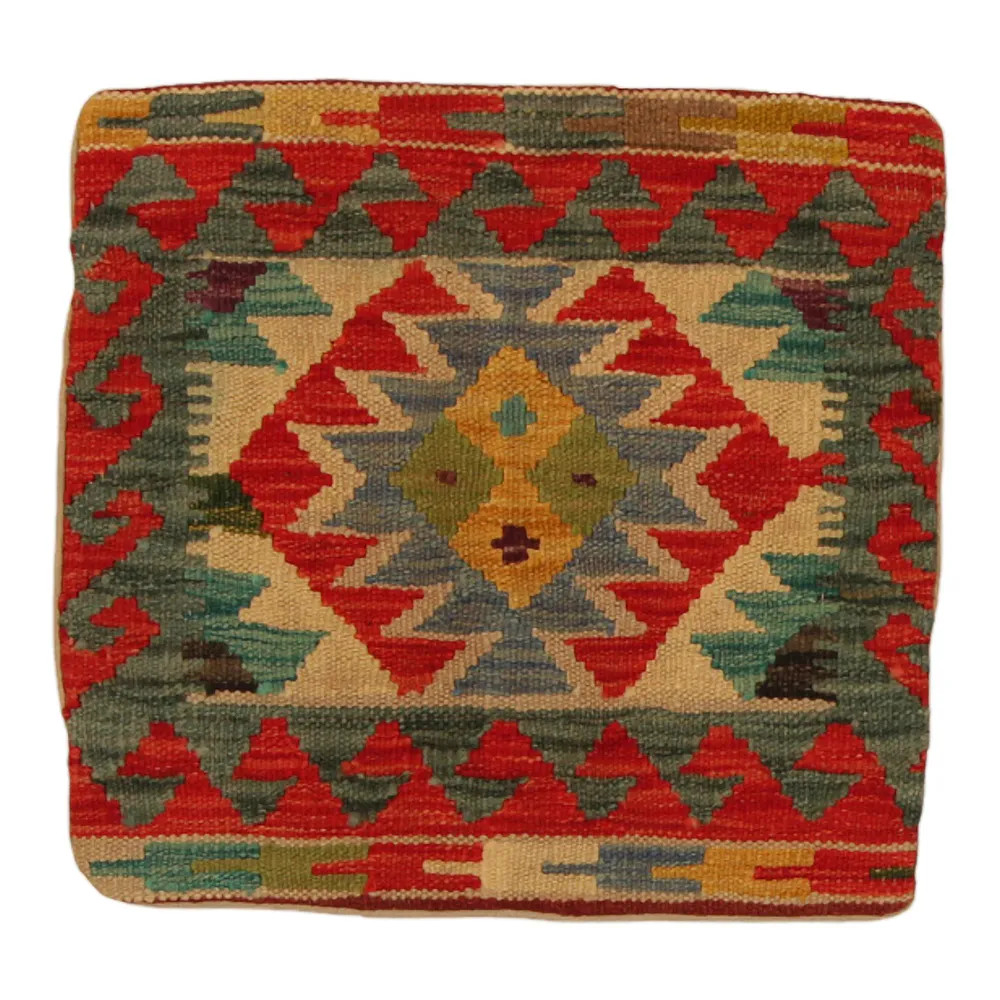 Oglejte si to ročno tkano okrasno blazino Kilim, ki je popolna mešanica tradicionalnega afganistanskega tkanja preprog in elegantnega domačega dekorja. Ta edinstvena prevleka za blazino Kilim bo s svojim elegantnim videzom, bogatimi barvami in osupljivimi vzorci oživila vsako notranjost. Ročno tkana prevleka za blazino je izdelana iz originalne afganistanske preproge Kilim, ki se odlično ujema z različnimi slogi pohištva in notranje opreme. Živahne barve in edinstveni vzorci ustvarijo vznemirljiv vizualni učinek in izboljšajo ambient v vašem prostoru, ne glede na to, ali gre za dnevno sobo ali spalnico. Iz afganistanske volne izdelana prevleka za blazino Kilim je enostavna za čiščenje, zato je vzdrževanje preprosto. Poleg tega trpežnost materiala zagotavlja, da boste v lepoti okrasne blazine Kilim na svojem pohištvu lahko uživali še vrsto let. Barve in vzorci blazine Kilim bodo zaradi temeljitega pranja po postopku tkanja dolgo časa ostali živahni. Ta skrbna obdelava zagotavlja dolgo življenjsko dobo in izvirno lepoto prevleke za blazino. Pisane okrasne blazine Kilim ponujajo široko paleto možnosti za zamisli o notranjem oblikovanju. Ne glede na to, ali želite v sobi ustvariti edinstveno vzdušje ali izboljšati obstoječe pohištvo, je barvita blazina Kilim odlična izbira.