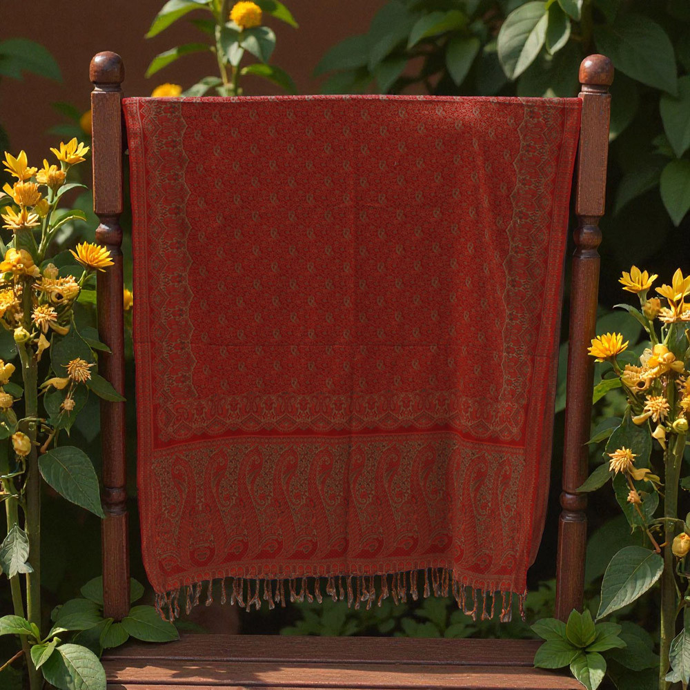Šal rdeč 215x105 velik ženski šal iz bombaža